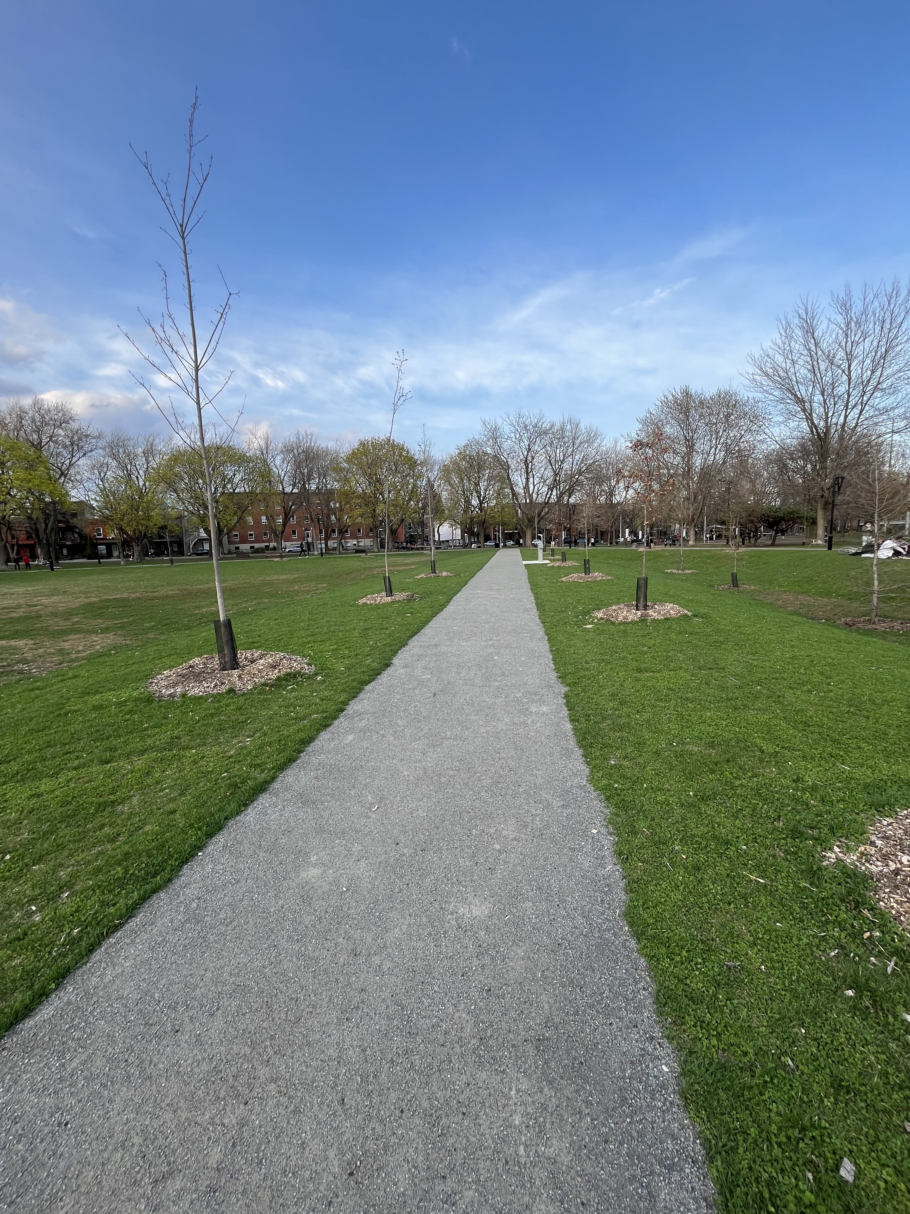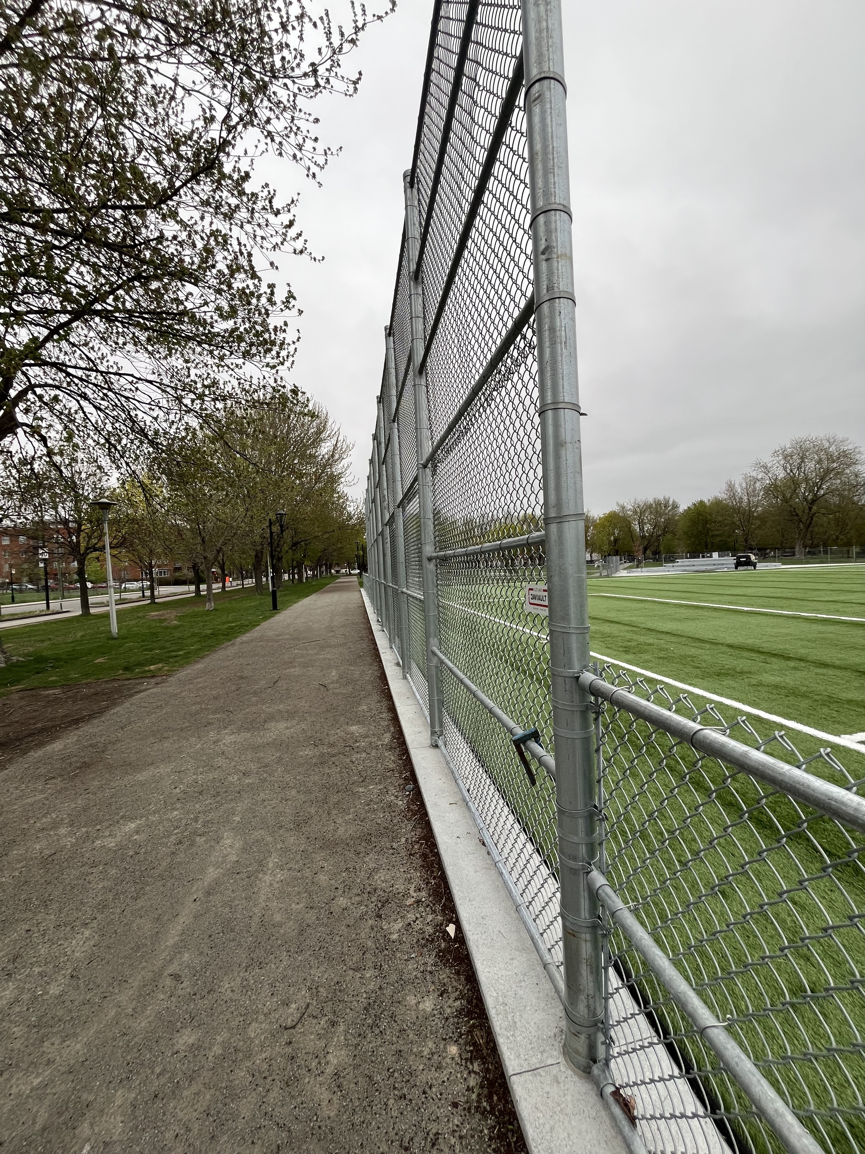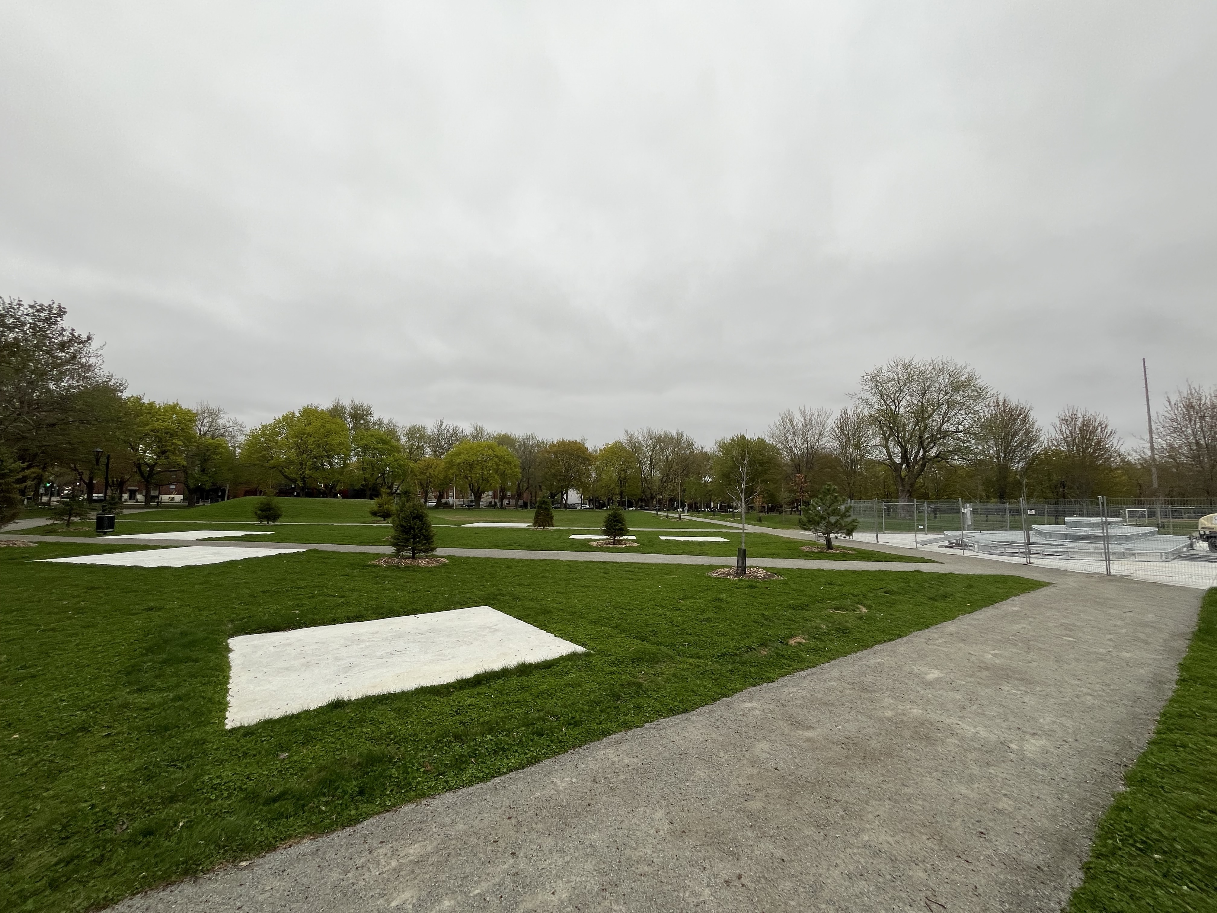 Des déficiences ont été constatées sur le revêtement synthétique, ce qui fait en sorte que la surface se dégrade beaucoup plus rapidement et qu’elle ne respecte plus les normes de sécurité en vigueur. Le remplacement se fait par la Fondation Bon Départ, laquelle a offert l’aire de jeu à l’Arrondissement en 2022.
