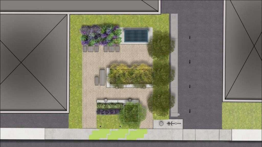 Cette placette, située au cœur du Bronx, est le fruit de la deuxième édition du budget participatif. C’est l’un de deux microparcs et microplaces en chantier à LaSalle, l’autre étant à l’angle de la rue Léger et du boulevard Newman. Le budget total pour ces deux projets est de 2,4 millions $, selon le site web de la Ville de Montréal. Ils visent à « offrir à la population des espaces verts et de socialisation de proximité ».