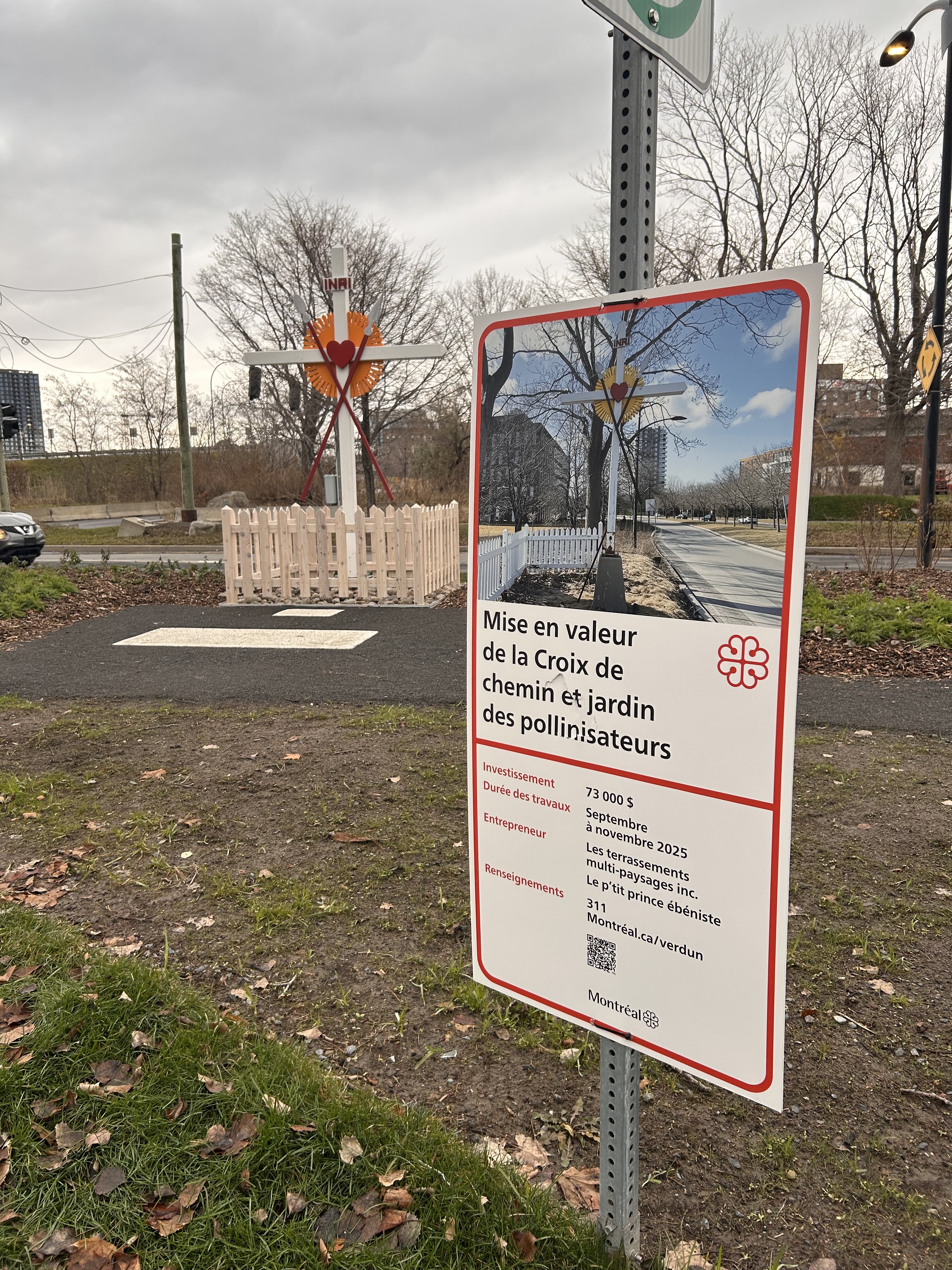 Je ne suis pas trop certain si on peut compter ça comme un parc mais il y a un nouvel aménagement pour mettre en valeur la Croix de chemin et jardin des pollinisateurs à l’entrée ouest de l’IDS, du côté du sentier multifonctionnel.