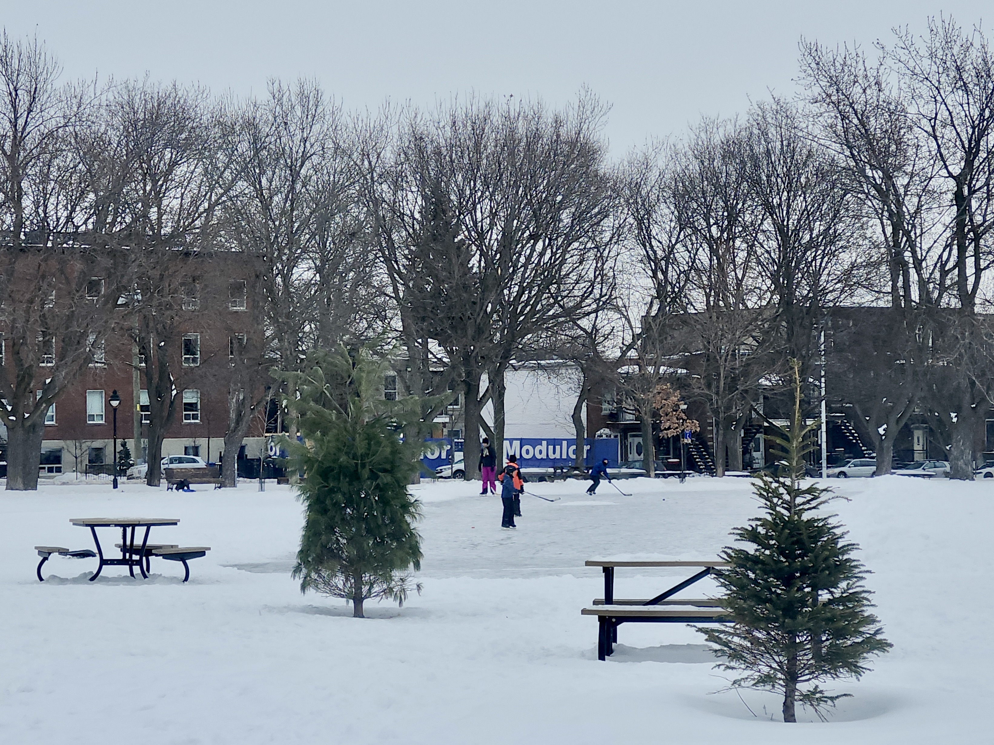 Ce parc/parvis de la Basilique Saint-Patrick mériterait une belle rénovation urbaine. Actuellement un peu abandonné, quoique la neige aide actuellement le pari.