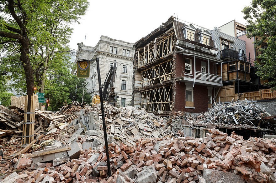 Des immeubles du XIXe siècle viennent d’être démolis, à l’intersection de l’avenue Viger et de la rue Saint-Hubert, en raison de leur instabilité. Au grand dam des défenseurs du patrimoine.