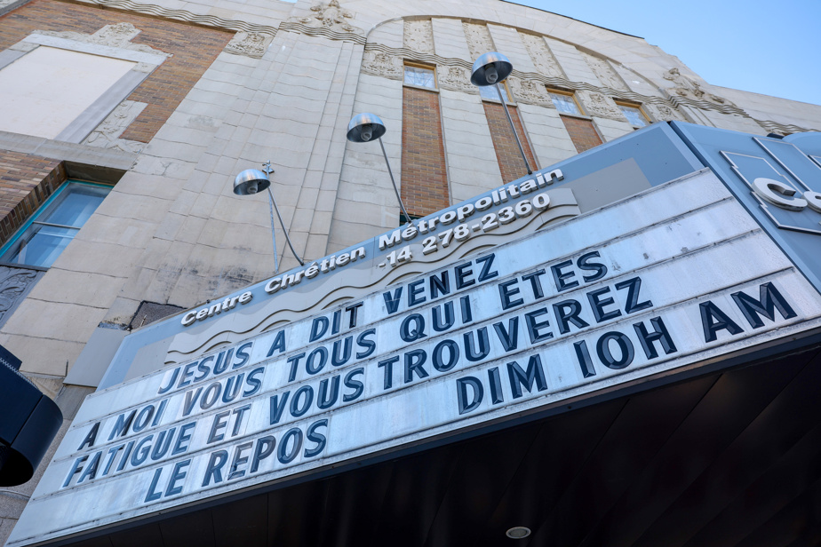 Ce ne sont toutefois pas des films qui sont à l’affiche sur la marquise. On peut y lire : « Jésus a dit venez à moi vous tous qui êtes fatigué et vous trouverez le repos ».