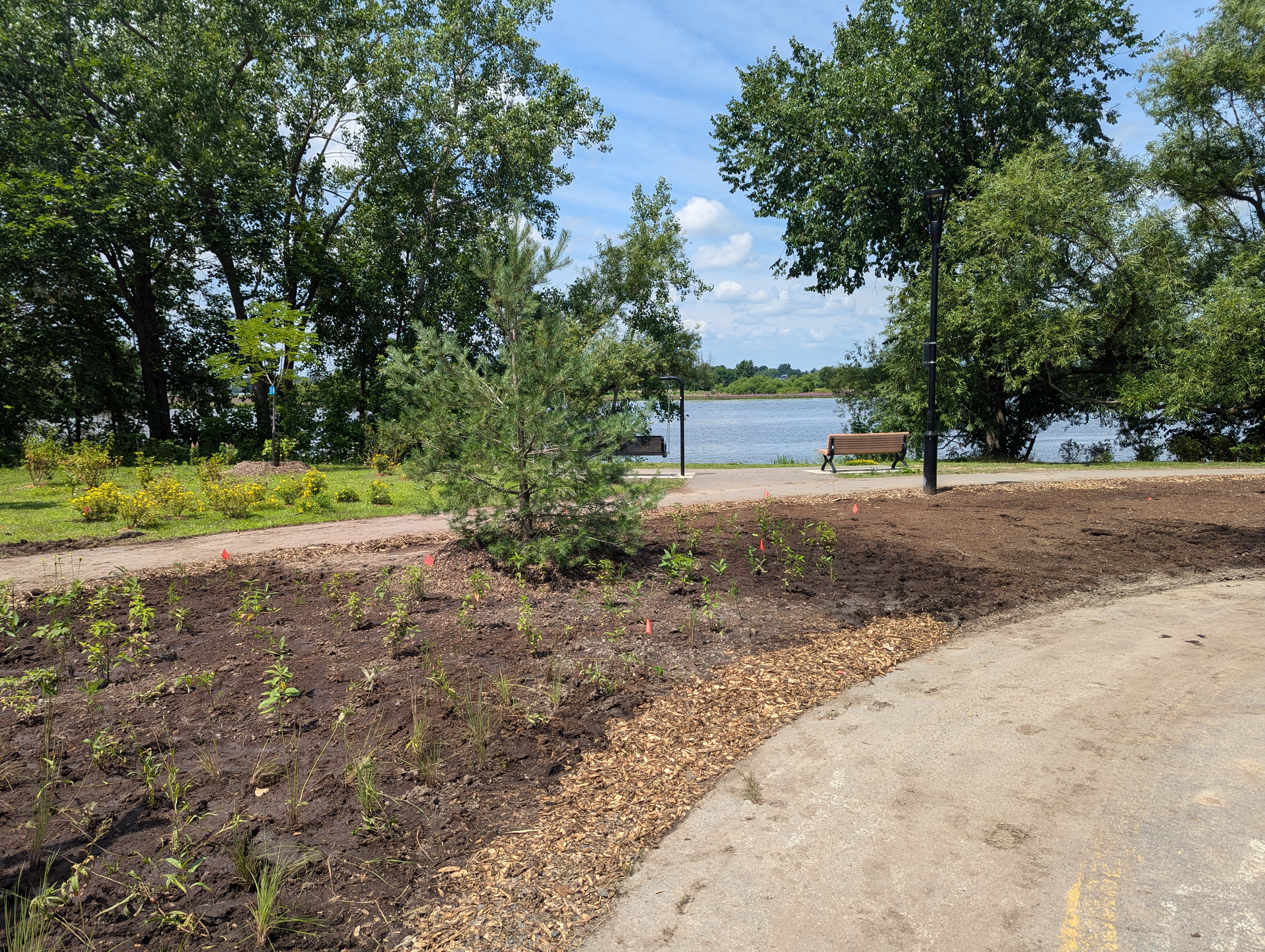 Des travaux de réaménagement du petit parc qui longe la rivière ici (je ne me souviens plus du nom de celui-ci)