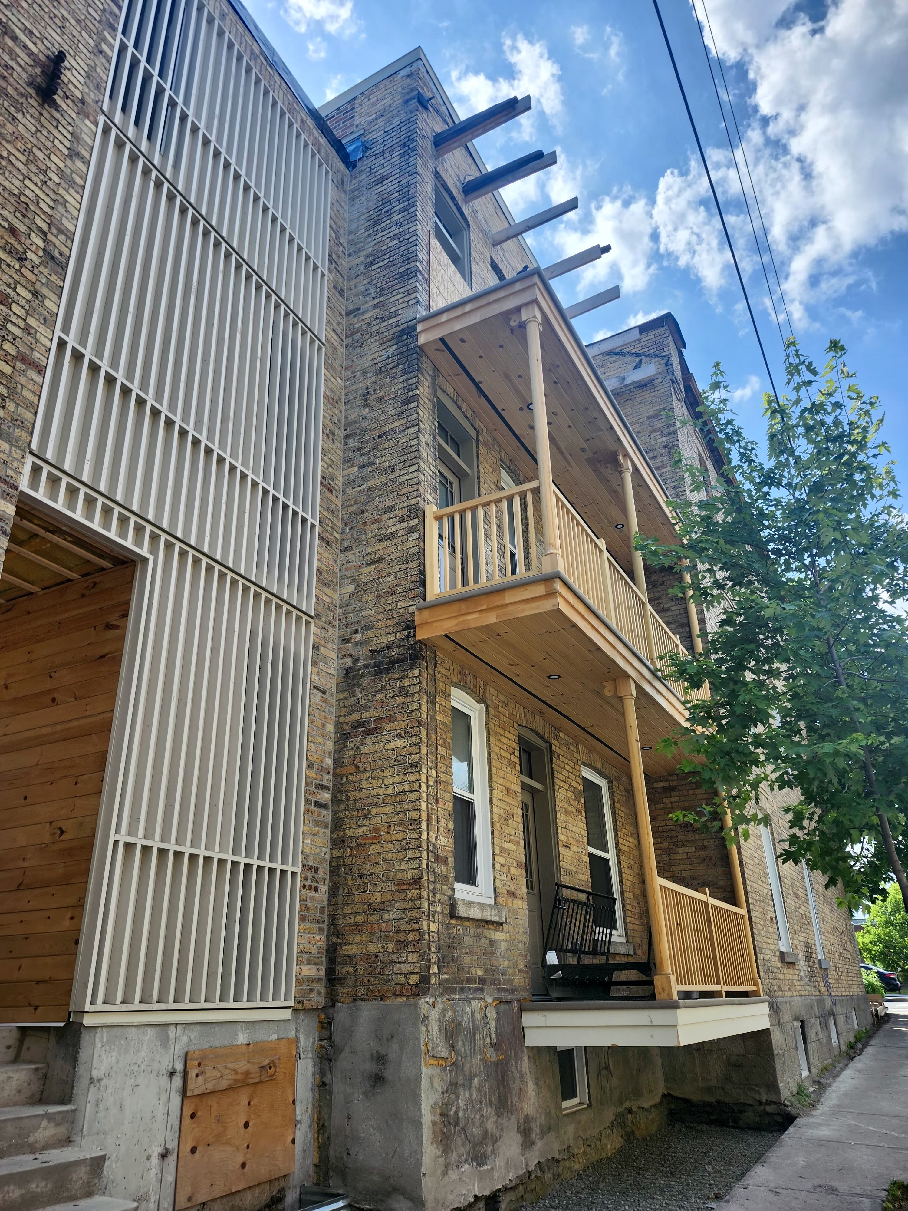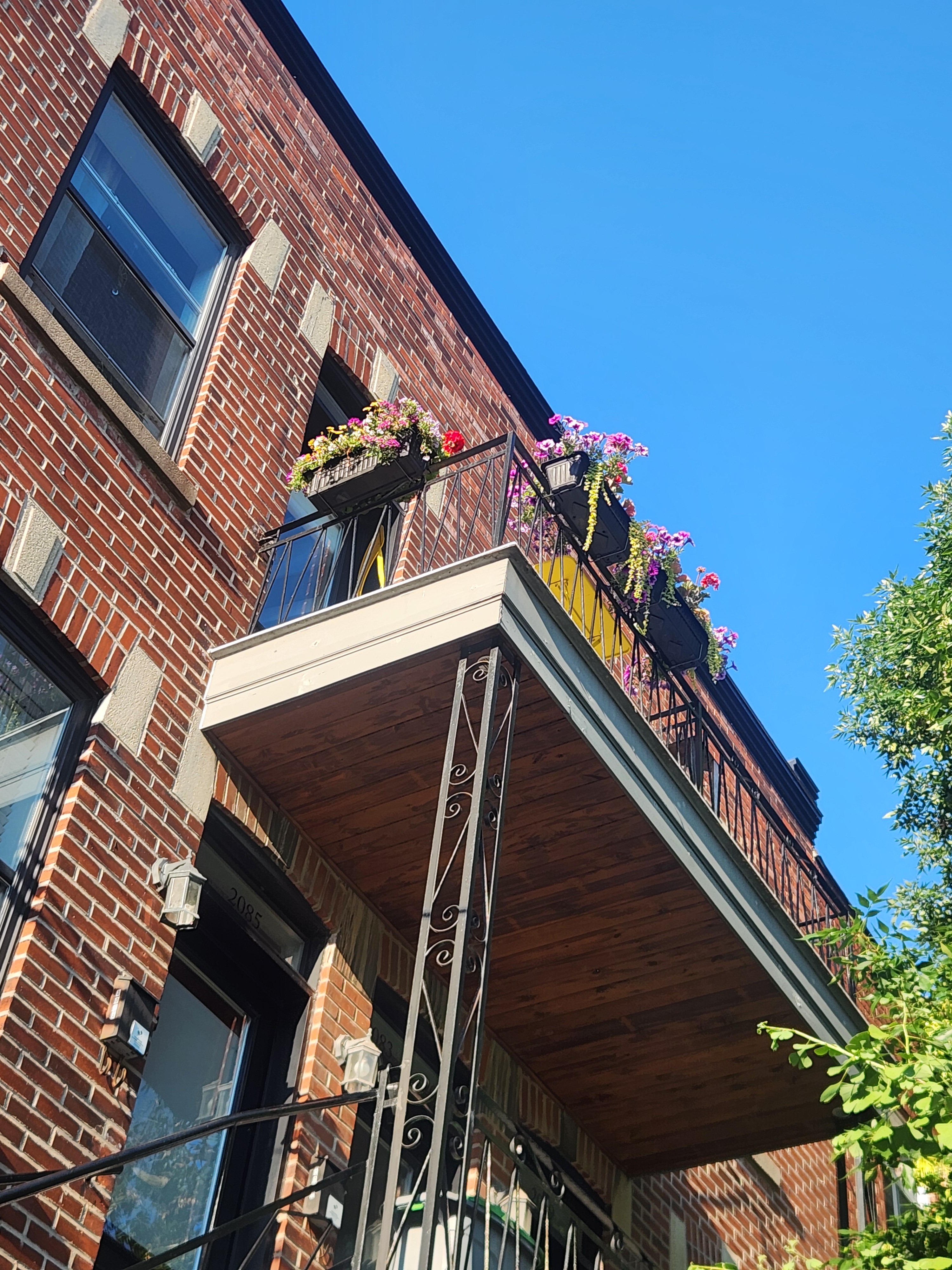 C’est une simple restauration de balcons, mais je trouvais le bois sympathique. Plateau Mont-Royal, coin de Bullion et Saint-Joseph.