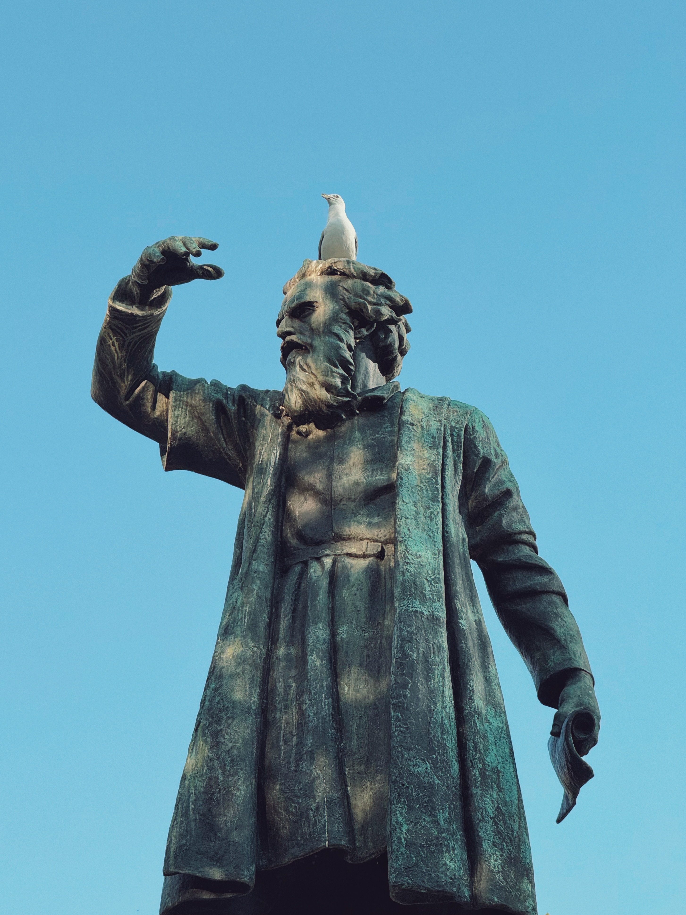 La tige de bois en arrière, c’est pour le tourner selon le vent. La petite fenêtre en avant, ça sert de meurtrière en cas d’attaque.