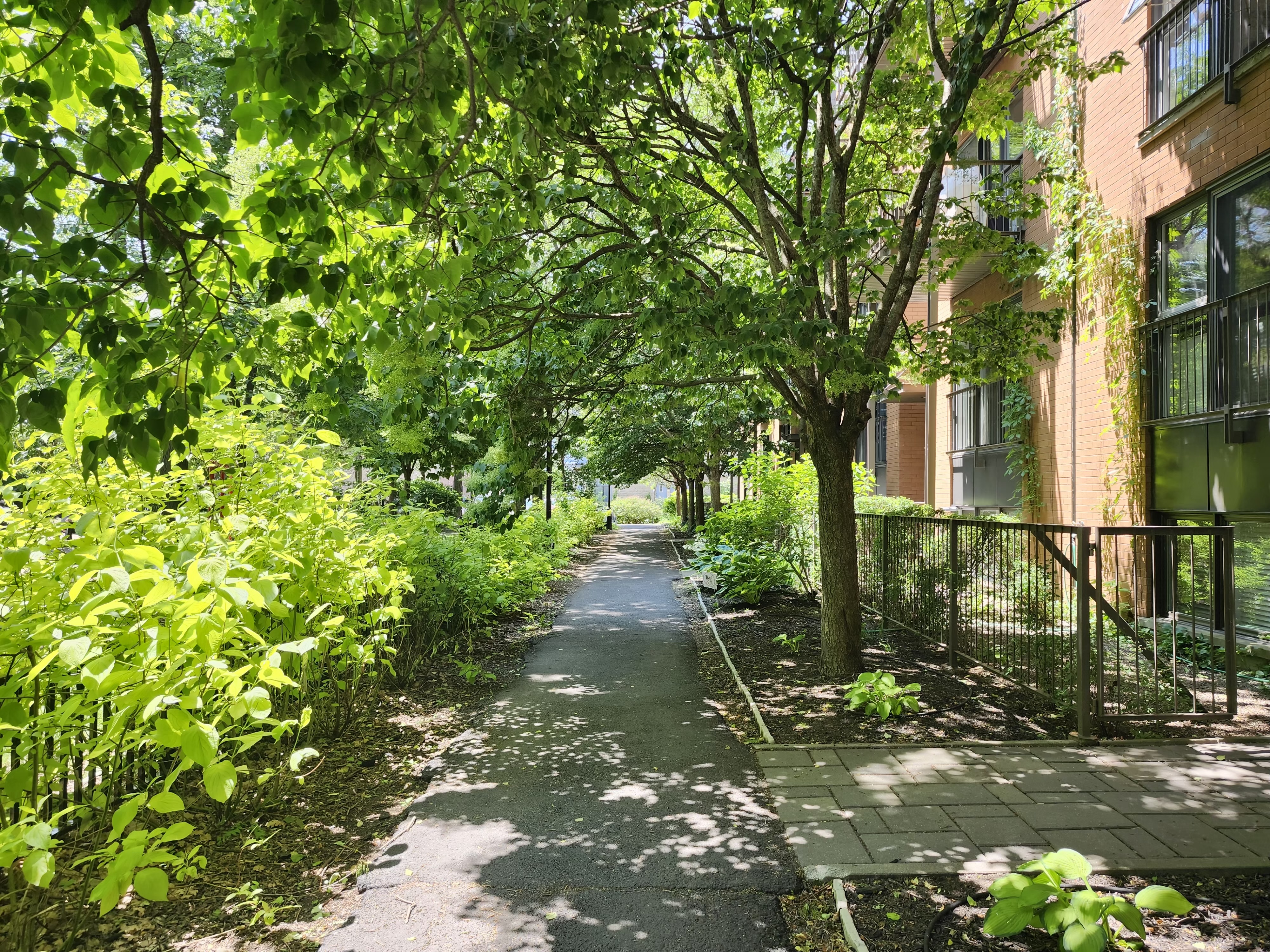 J’ai déjà mis des photos de cette allée piétonne dans l’axe Boucher/Fairmount, dans le Mile End, mais chaque année, la canopée est de plus en plus belle.
