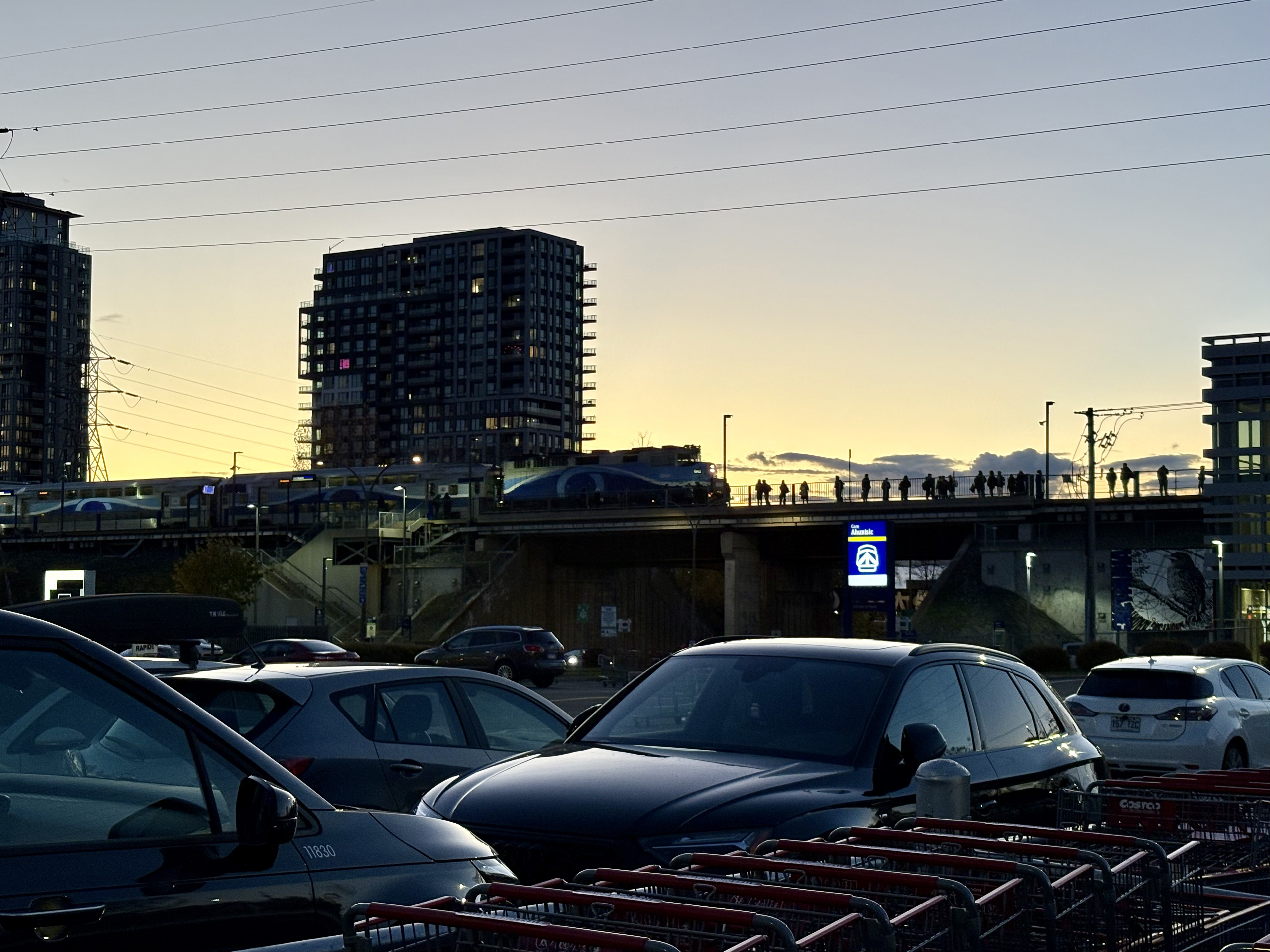 La gare Ahuntsic depuis le stationnement du Costco Marché Central.