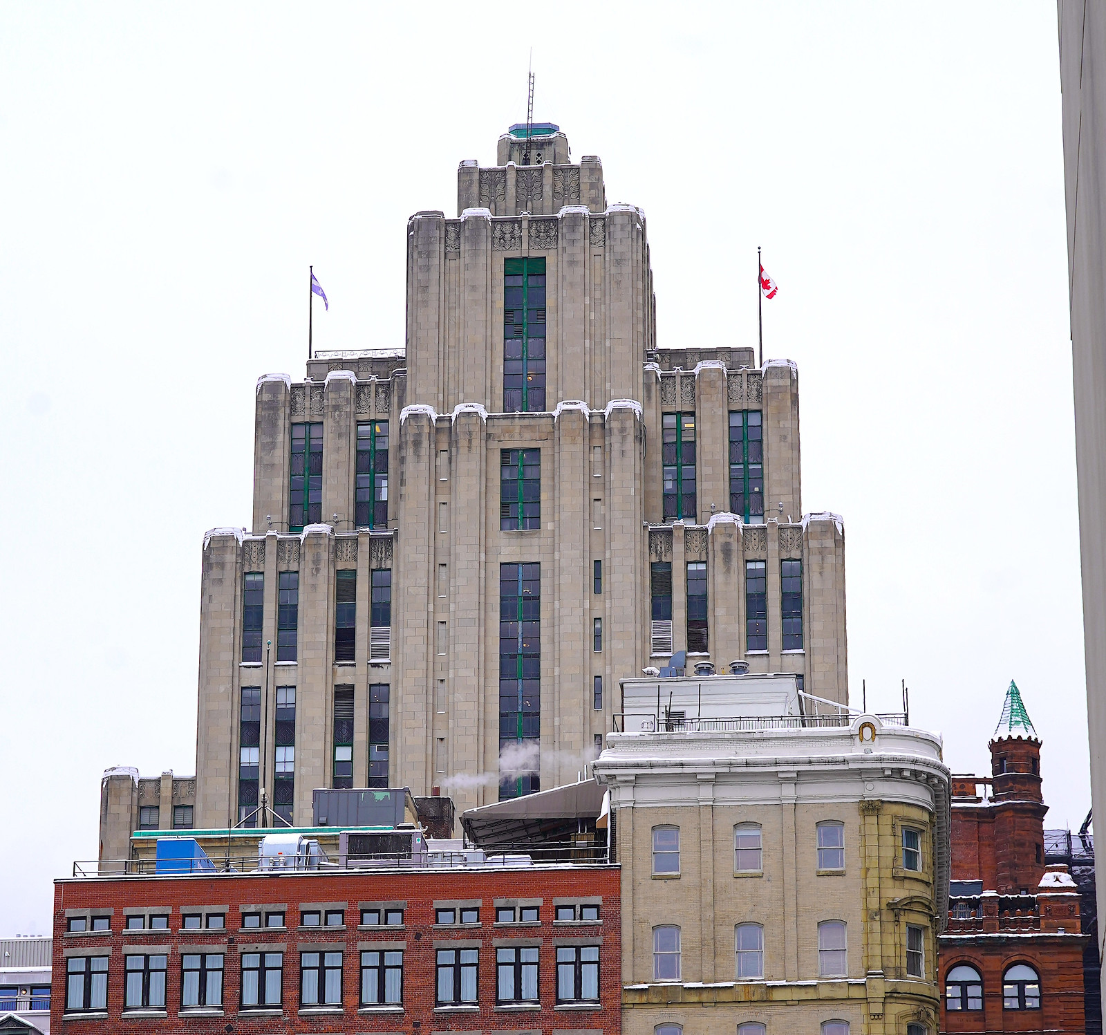 l’édifice Canada Life. Construit en 1895 c’est le premier vrai gratte-ciel au Canada du a son squelette en acier.