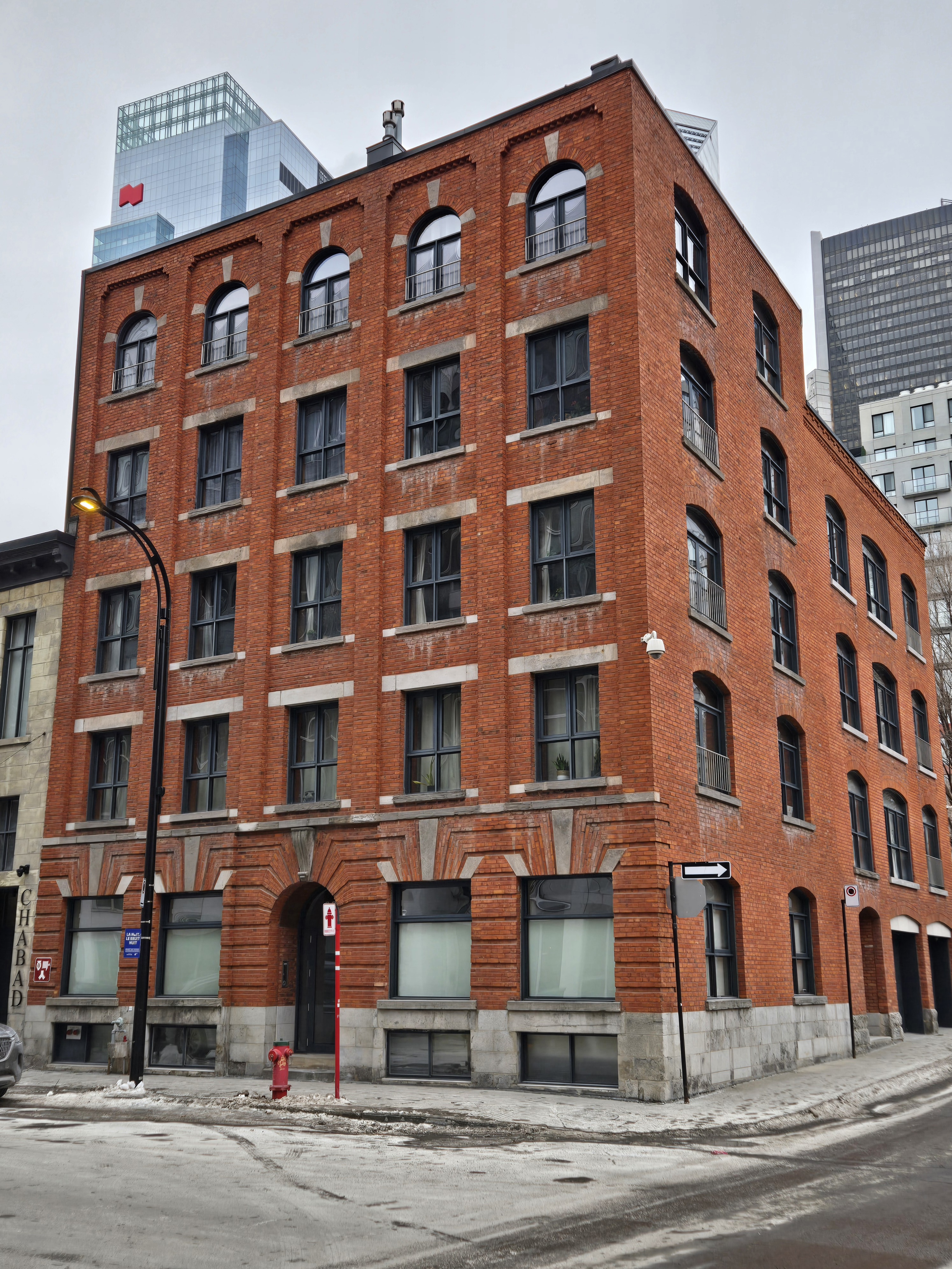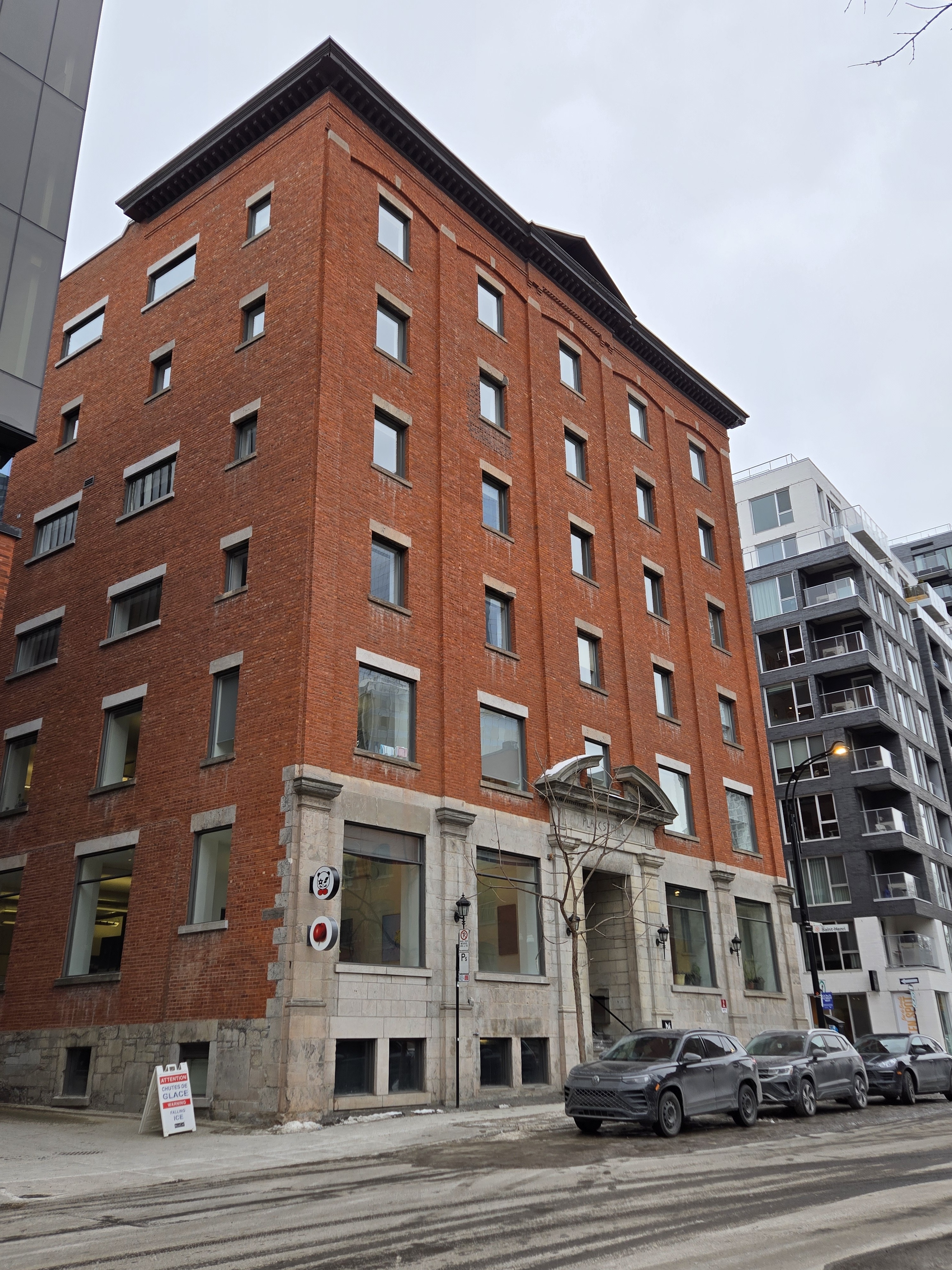 Deux rescapés en brique rouge du début du XXe siècle sur la rue Saint-Paul Ouest.