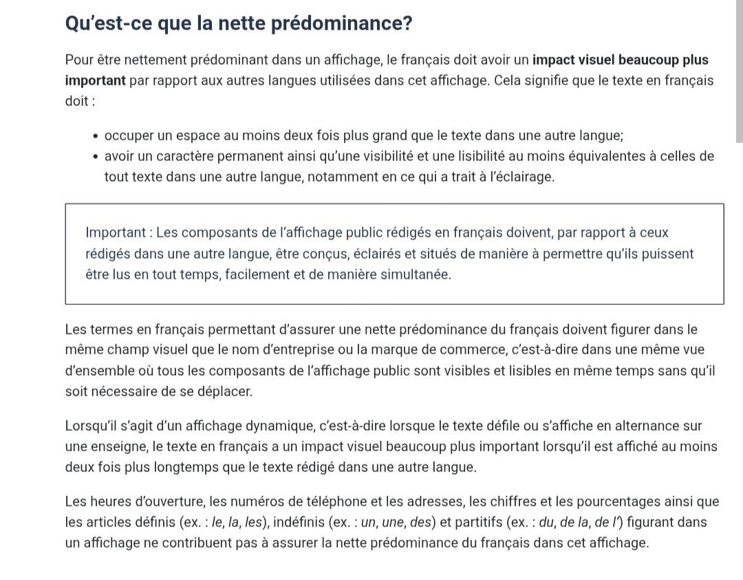 Good dans ce cas, ça règle une partie de problème! Si le déclin du français continue qu’est-ce qu’on va faire? Je vois mal ce qu’on peut restreindre de plus?