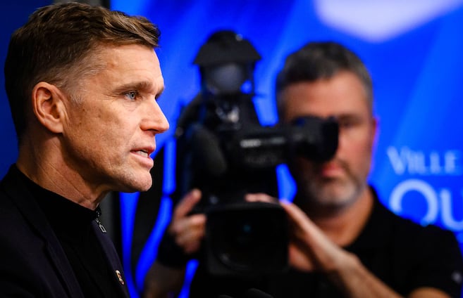 Le maire de Québec, Bruno Marchand, à son premier point de presse de 2026, mercredi. (Jocelyn Riendeau/Le Soleil)
