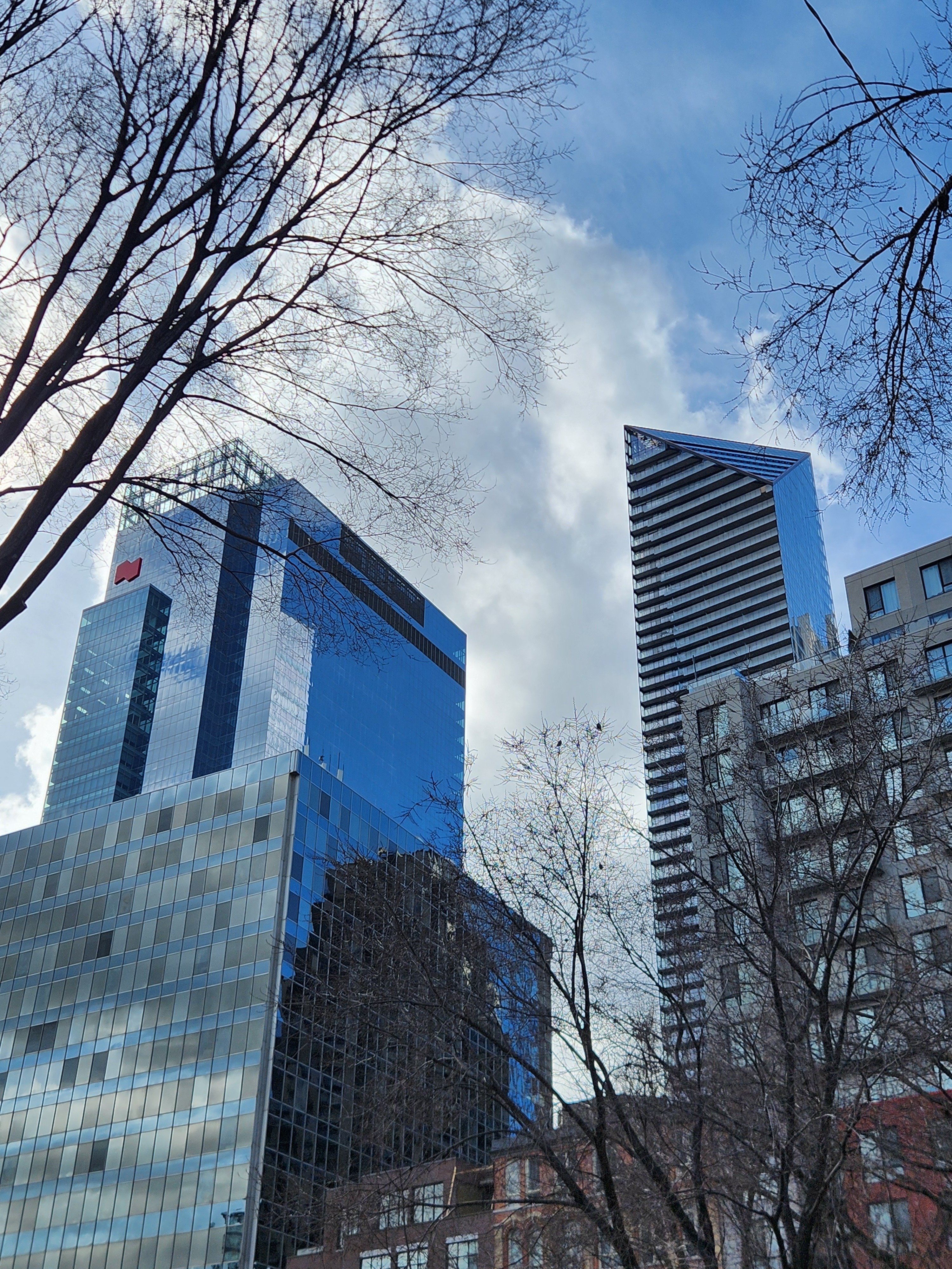 Cela me rappelle le jardin de la tour Intact, qui se trouve également au-dessus de la base de la tour. Y a-t-il d’autres exemples de ce genre à Montréal?