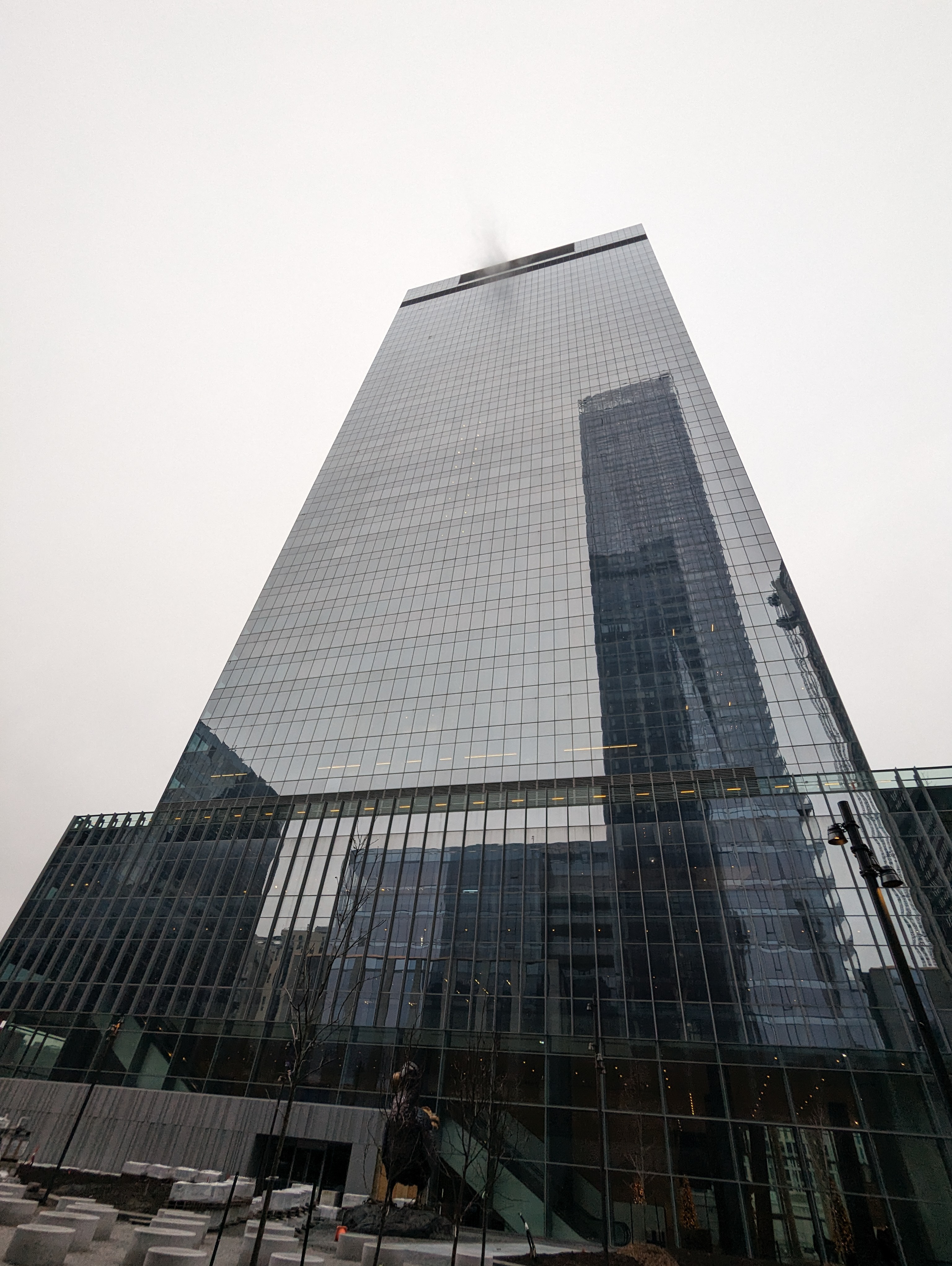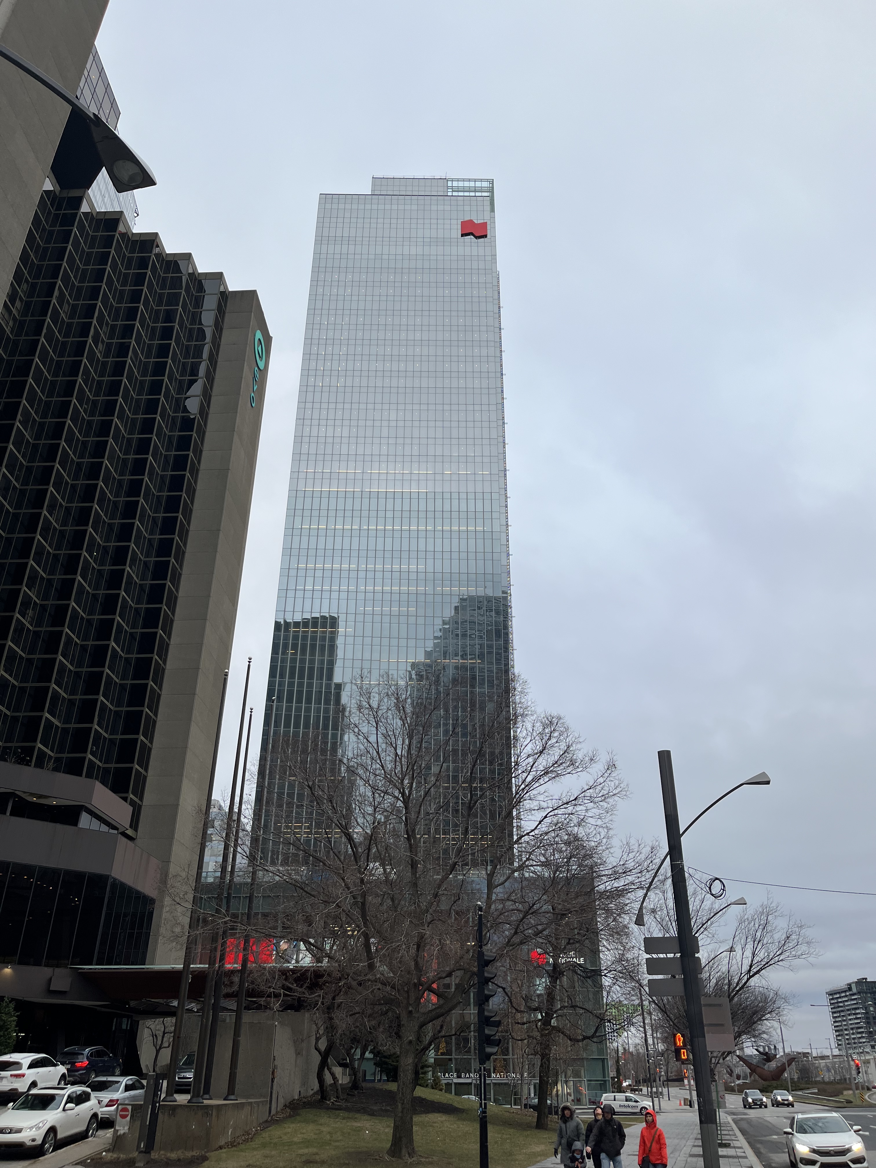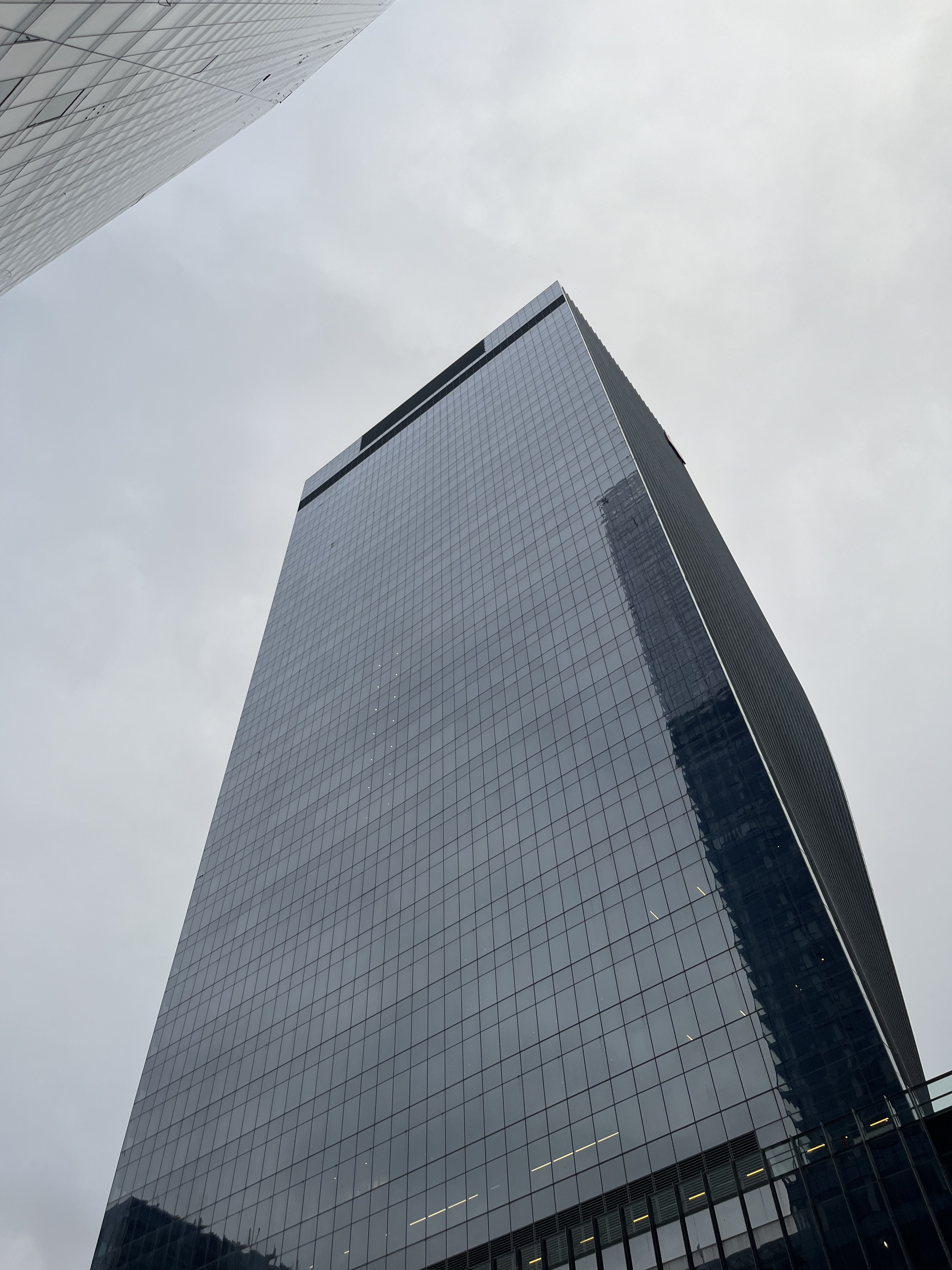 On voit sur cette photo de @Mondo_Grosso la partie arrière du Bureau en Gros qui pour le moment ne nuit pas à la luminosité du petit parc entre les deux tours. Toutefois la Ville devrait tout de suite penser à protéger le court ensoleillement et surtout la luminosité de ce petit espace public. En effet il serait directement menacé d’ombrage permanent si on ne décalait pas un peu plus vers l’ouest le volume d’un futur immeuble qui remplacerait éventuellement le BeG comme on peut le voir sur Google Maps