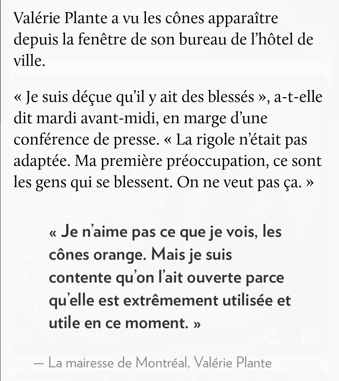 Par contre je vais chialer contre la ville un peu, peuvent-t-ils mettre d’autres choses que des maudits cônes oranges ?