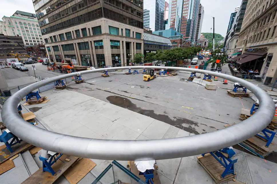Après avoir fait couler beaucoup d’encre, L’Anneau, qui a pour vocation de devenir un symbole phare du centre-ville de Montréal, est presque prêt à accueillir les premiers curieux. Dans les prochains jours, il sera hissé à l’entrée de l’esplanade de la Place Ville-Marie, qu’il ornera pour l’été.