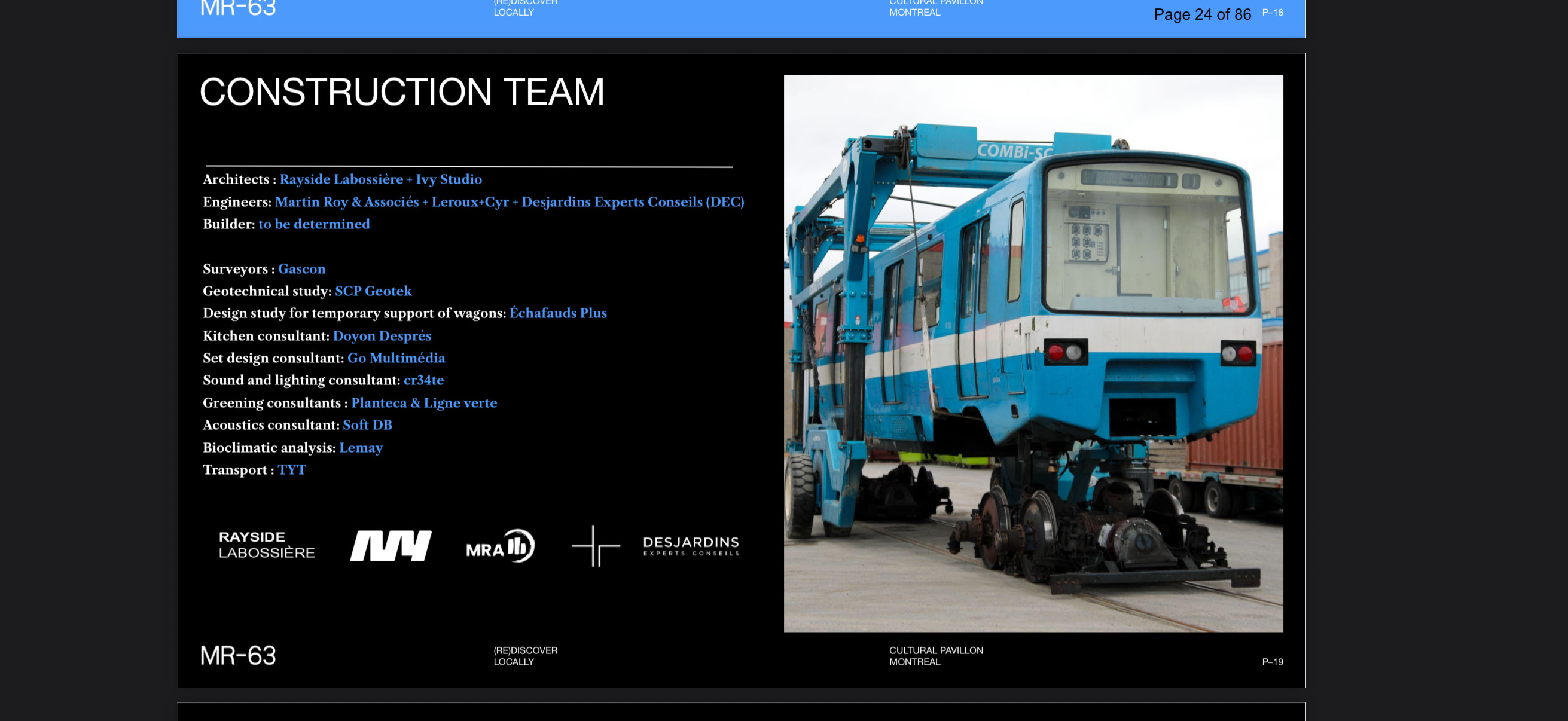 En mars 2016, la Société de transport de Montréal (STM) a lancé un appel à projets afin de donner une seconde vie aux voitures de métro MR-63. Plusieurs projets ont été retenus, dont celui de l’organisme à but non lucratif Projet MR-63 (OBNL), un projet de grande envergure consistant à mettre en valeur plusieurs wagons à même un bâtiment écrin dans le quartier Griffintown. La construction d’un bâtiment destiné à la diffusion culturelle sur la future place William-Dow (Place) étant à l’étude depuis plusieurs années, l’arrondissement du Sud-Ouest (l’Arrondissement) a proposé à l’OBNL d’y installer son projet, lequel prévoit la construction d’un bâtiment accueillant huit anciens wagons de métro MR-63.