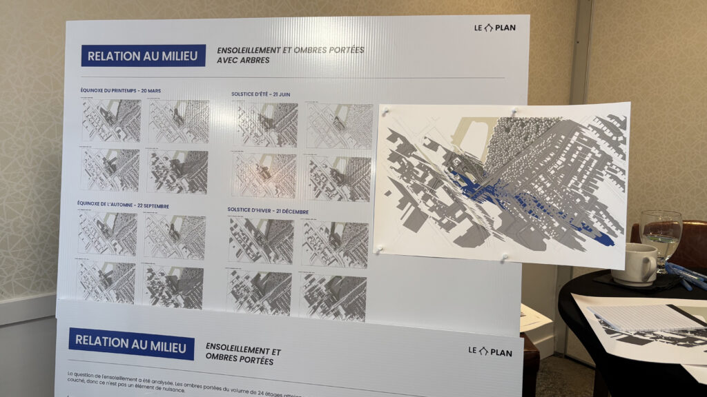 Pour finir, trois tours s’élèveront sur le site : une de 8 étages, une de 13 et une autre de 24. «La plus haute tour sera construite au fond du site, loin du boulevard. Nos études d’ensoleillement montrent que cela ne changera à peu près rien pour les gens du secteur», poursuit M. Boyer.