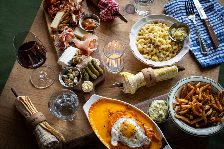 Avec 65 places, on y retrouve la même ambiance qui a fait le succès du premier Mamie : de la vaisselle vintage en guise de déco semblant tout droit sortie du marché aux puces, des murs de briques, des banquettes aux imprimés fleuris et même un coin foyer. Dans l’assiette, la signature demeure la même : des plats simples et réconfortants avec une belle sélection de vins nature ainsi que le vin à la verse, le tout à petits prix.