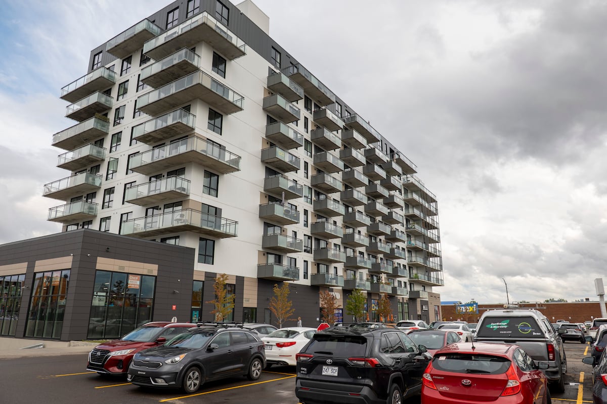 Un immeuble résidentiel avec des commerces au rez-de-chaussée est sorti de terre au centre du stationnement des Galeries de la Canardière. (Frédéric Matte/Le Soleil)