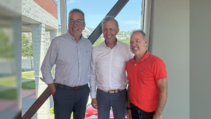 Louis Gauthier (à gauche) en compagnie du chef de Leadership Québec, Sam Hamad, et du candidat dans le district de Louis-XIV, Donald Gagnon.