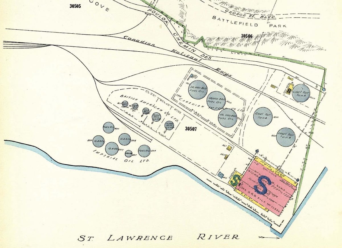 Carte d’août 1951 où on voit les installations pétrolières qui ont contaminé lourdement le sol. (Rapport Terrapex)