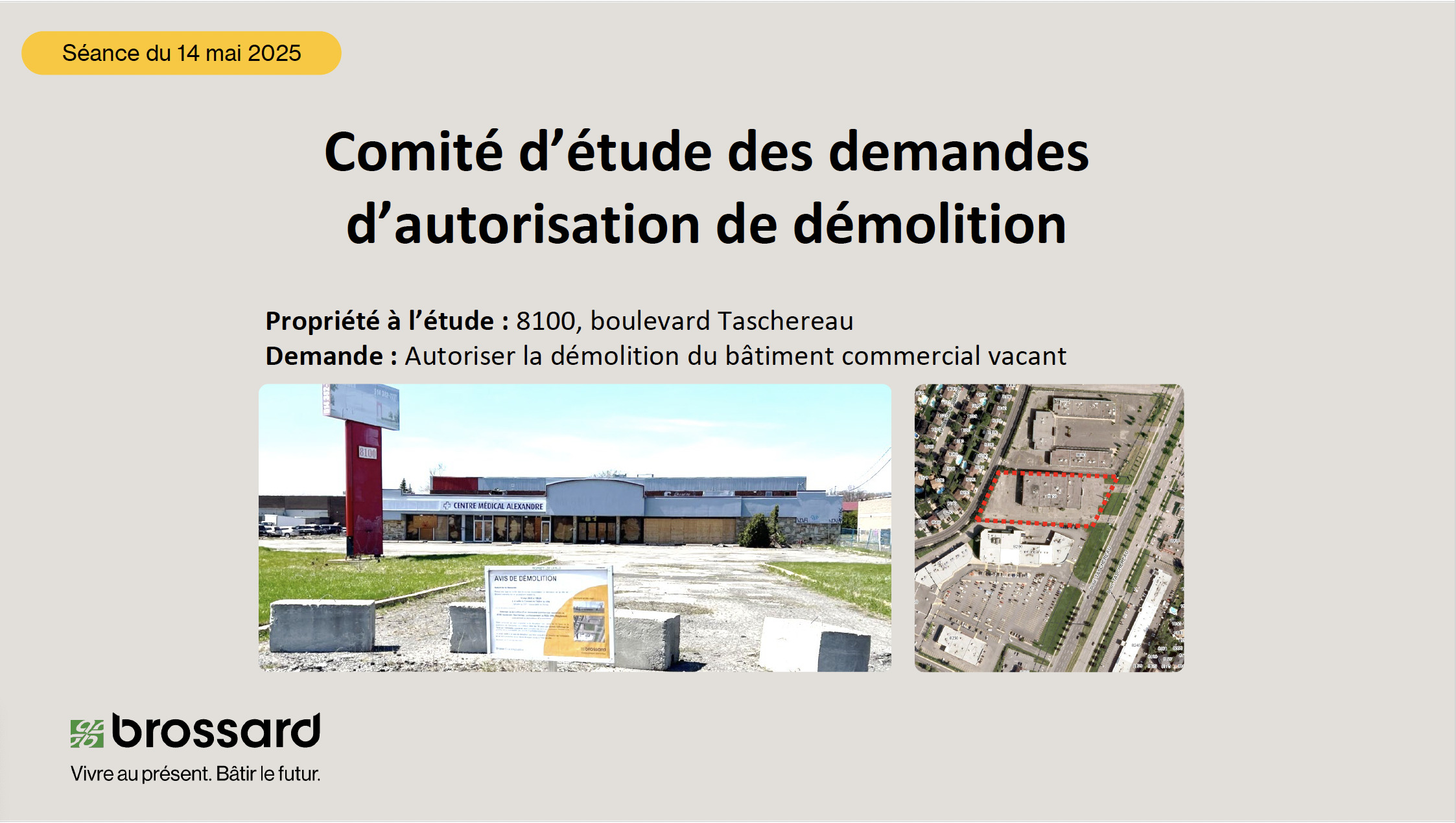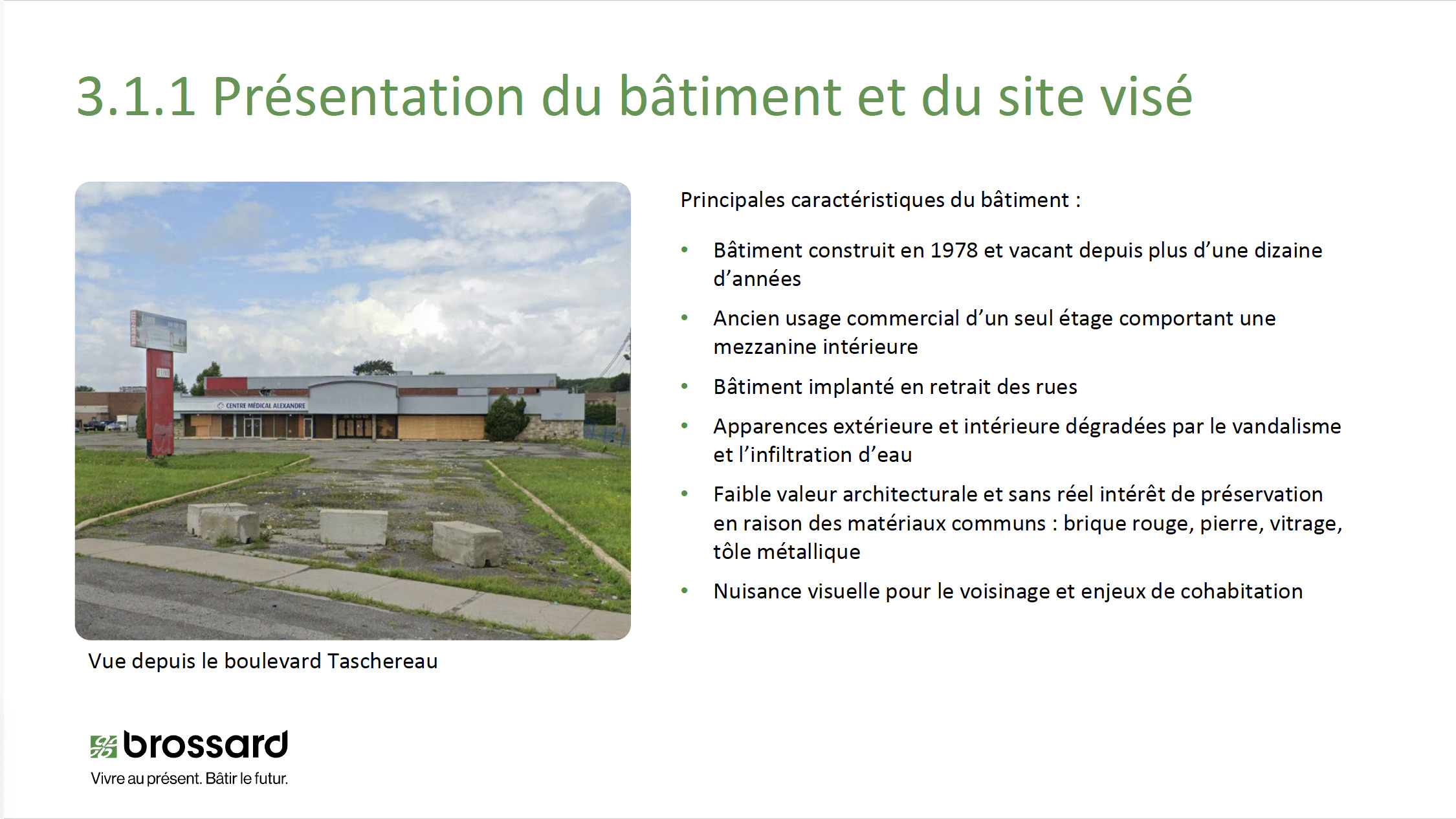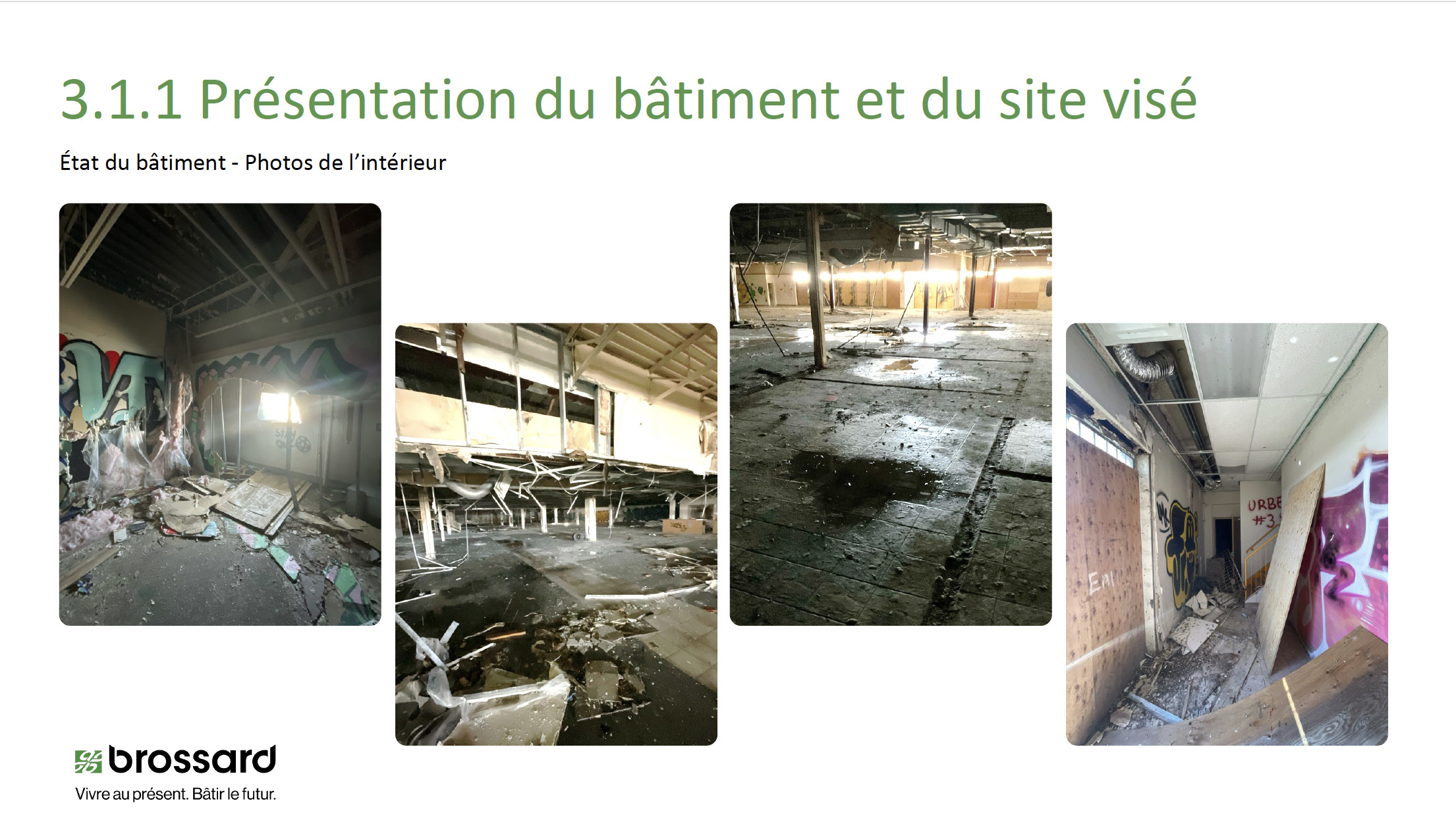 La Ville de Brossard demande à la Cour supérieure qu’elle ordonne au propriétaire du centre commercial abandonné du 8080, boul. Taschereau de démolir le bâtiment considéré dangereux. S’il n’obtempère pas, la Ville souhaite pouvoir effectuer ces travaux, aux frais du propriétaire.