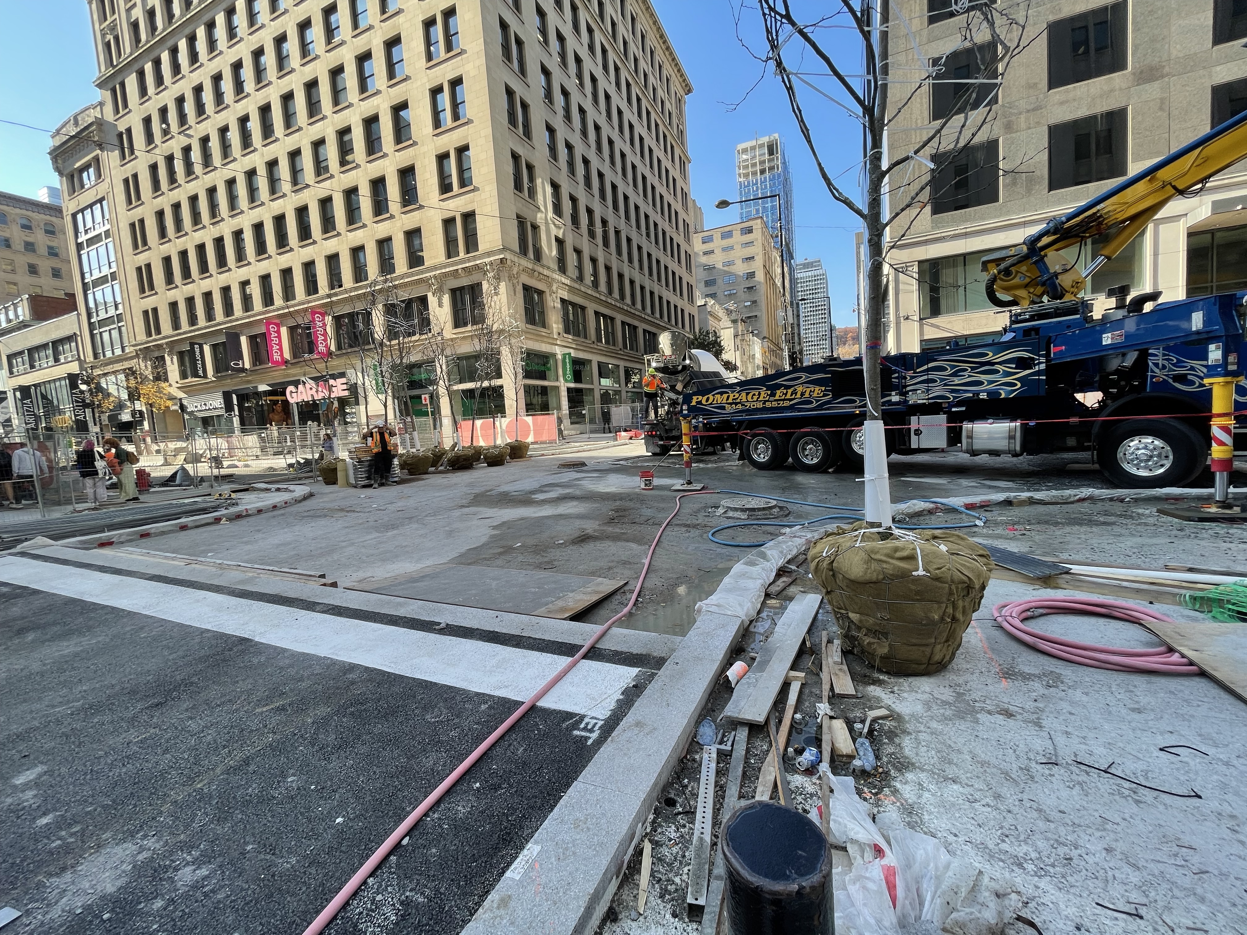 La largeur des trottoirs y a presque doublé, au grand bonheur des piétons. Des arbres et du mobilier urbain ont été ajoutés en abondance. Une seule voie de circulation a été conservée, avec assez d’espace de chaque côté pour permettre les livraisons et les virages aux intersections. La rue est piétonnisée à l’occasion, mais elle conserve en même temps une « flexibilité ».