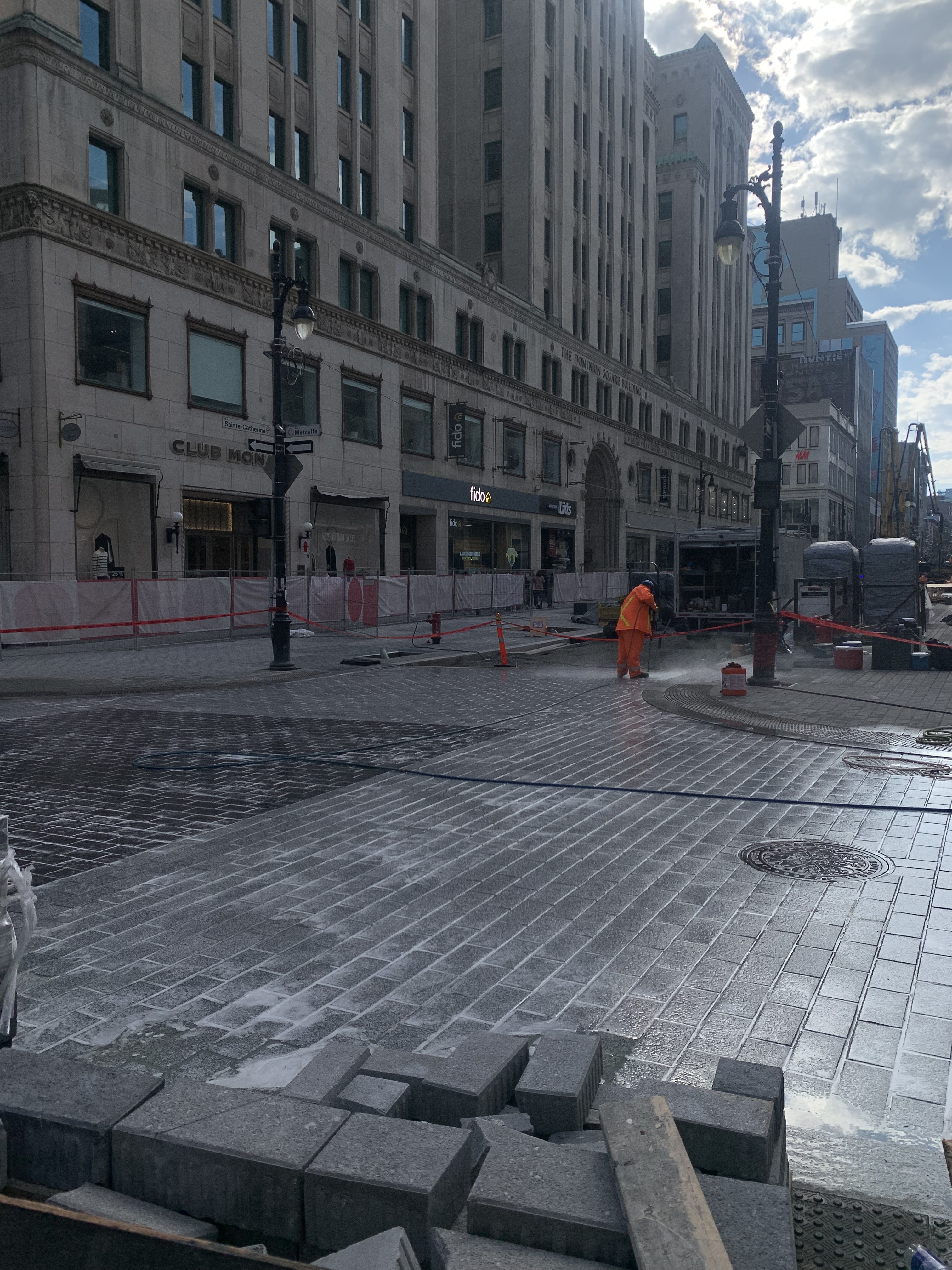 Metcalfe en nettoyage (cette intersection est vraiment belle avec les pavés en granite)