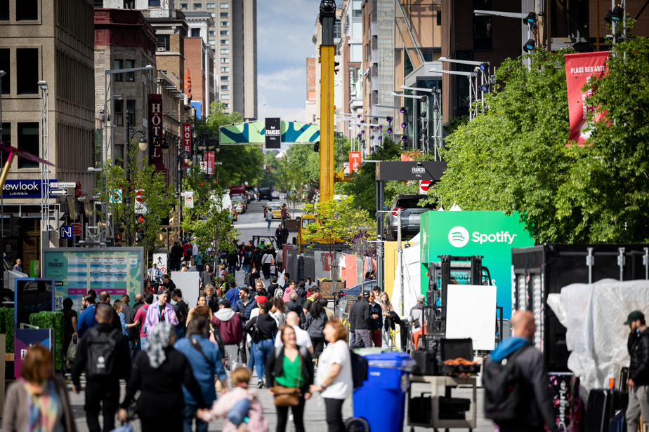 La rue Sainte-Catherine fermée à la circulation automobile, dans le Quartier des spectaclesD’abord, c’est le haut lieu de tous les grands festivals estivaux. Ça occupe déjà plusieurs mois à temps plein. Le reste de l’année, le Partenariat du Quartier des spectacles investit une fortune pour animer et sécuriser les lieux, avec une série de petits et grands évènements.
