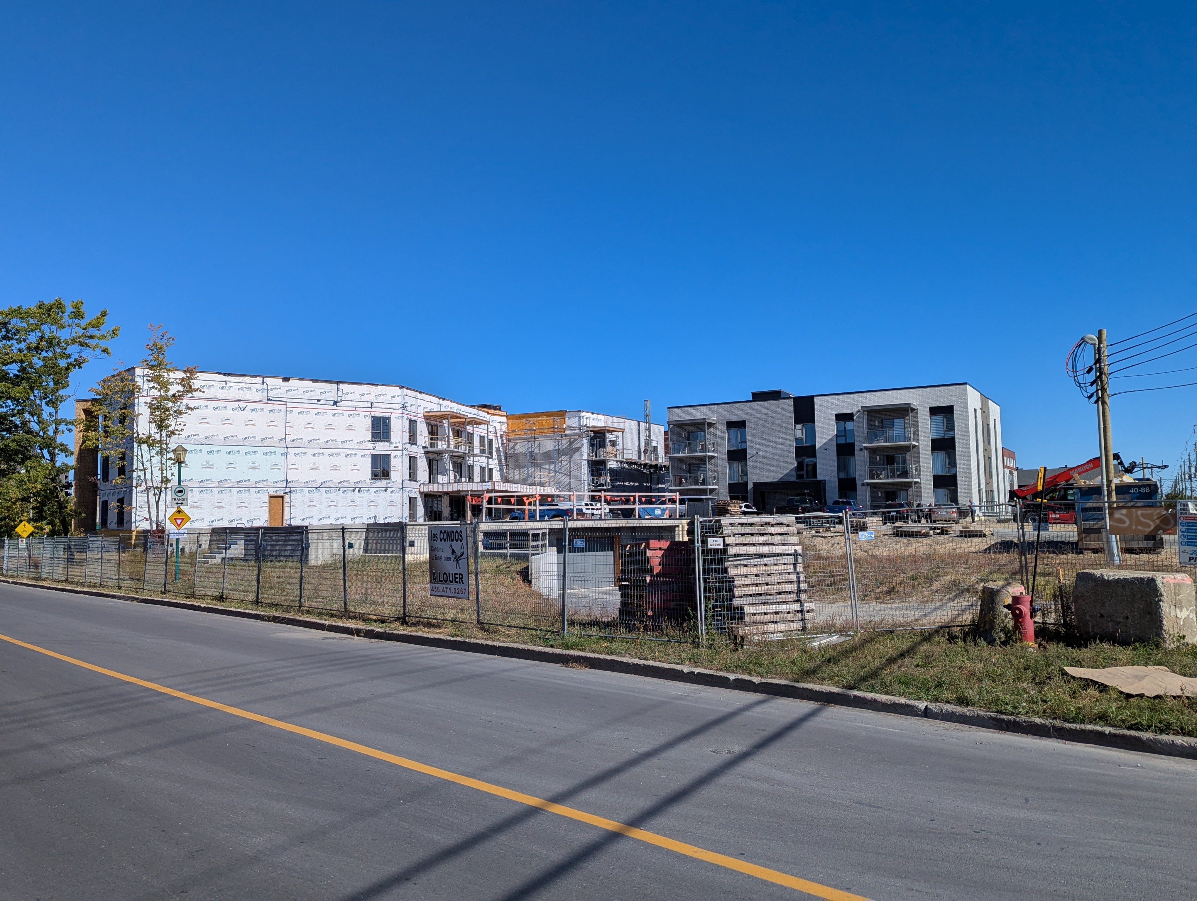 Ce projet s’inscrit dans la construction d’un nouveau quartier qui n’existait pas il y a à peine 10 ans, où se trouve maintenant un parc boisé avec des passerelles en bois, une panoplie de maison de ville et dont la phase finale va nécessiter la construction une bretelle d’accès à l’autoroute 640.
