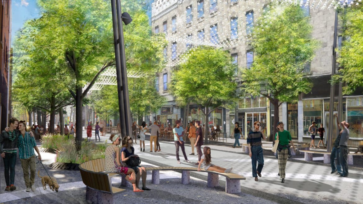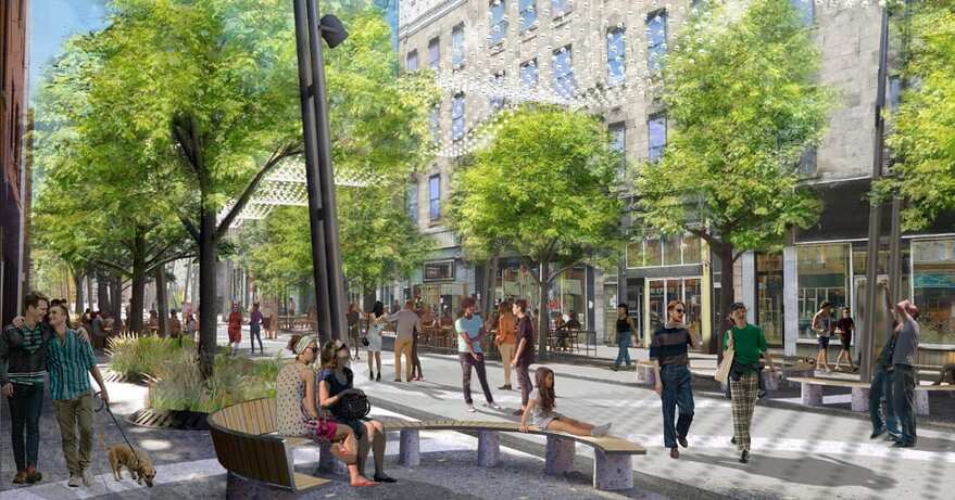 Sur le site web de la Ville de Montréal, il y a des rendus du réaménagement de Sainte-Catherine Est.