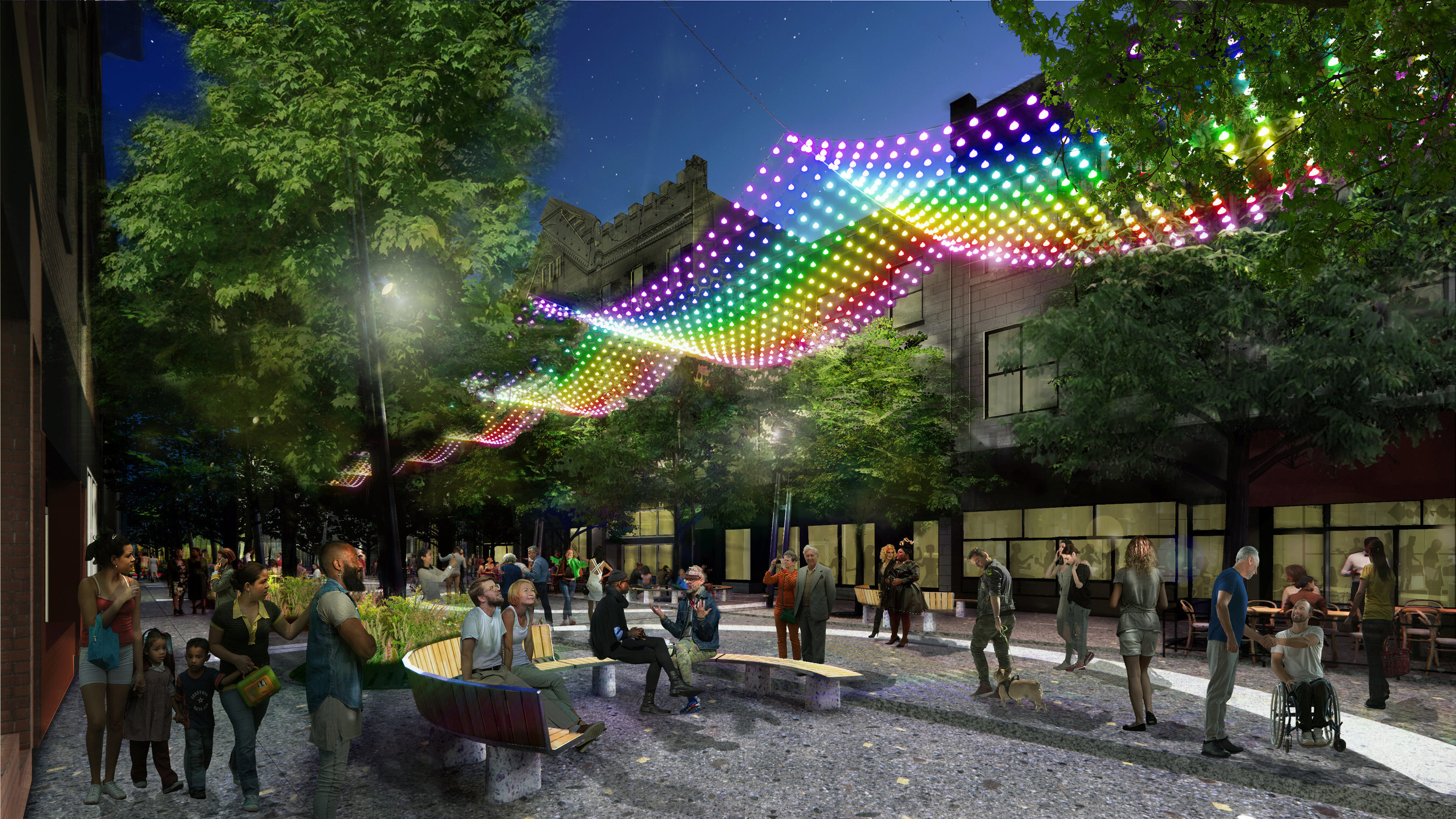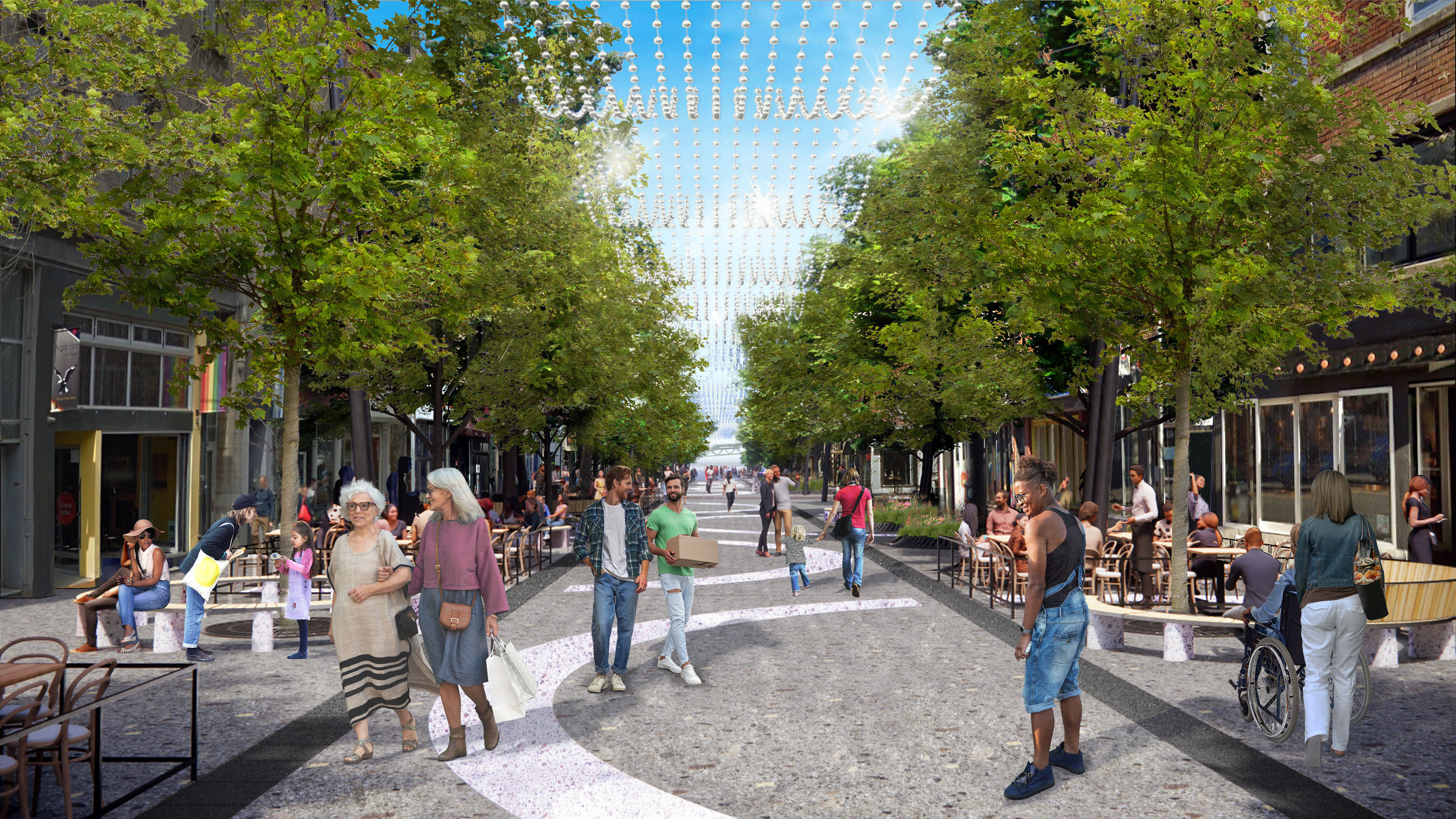 - la piétonnisation de la rue Sainte-Catherine Est, entre la rue Berri et l’avenue Papineau, avec des aménagements uniques et distinctifs;