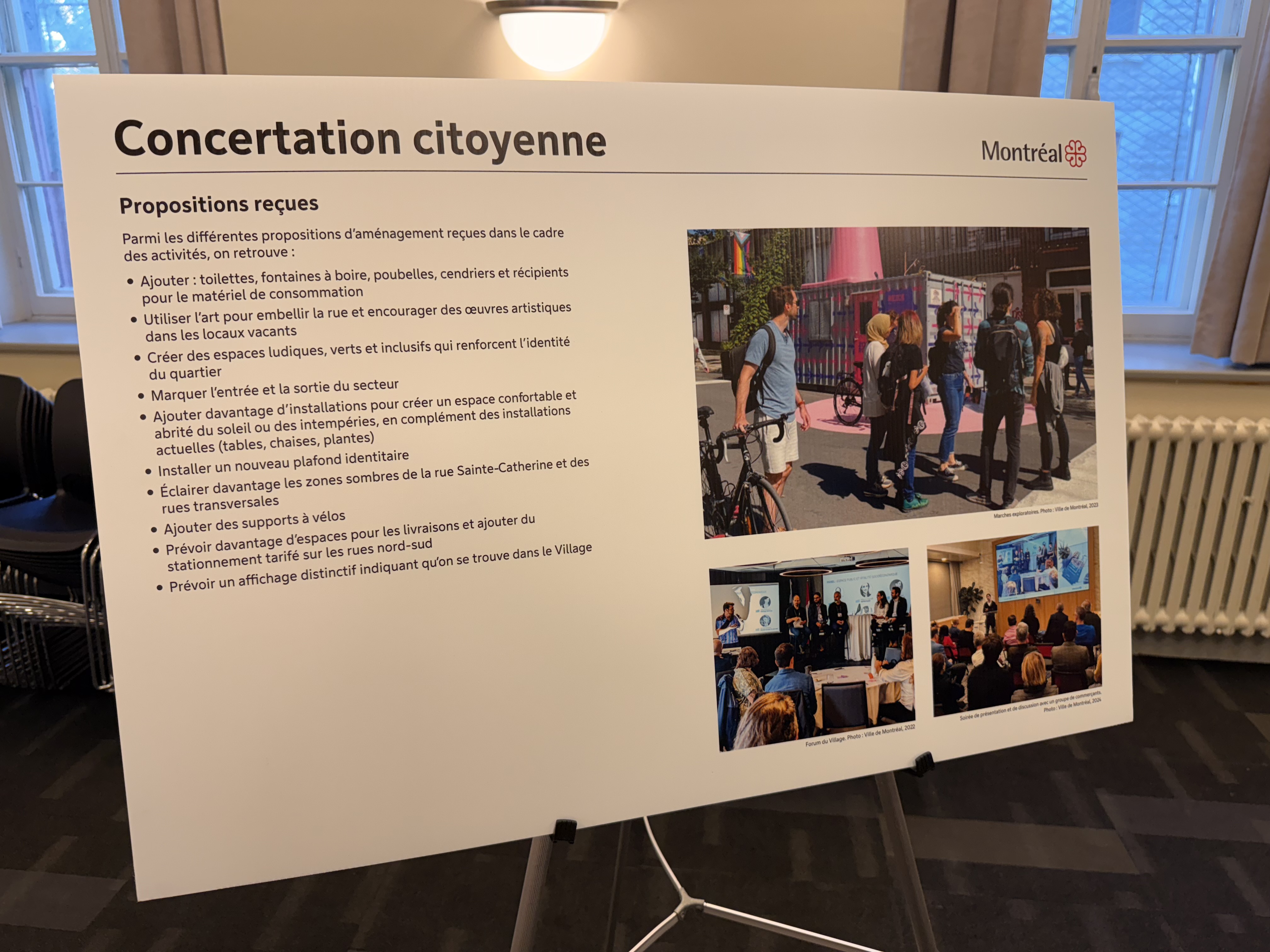 Ouin, on dirait que c’est un peu fait exprès. La semaine passée, je marchait dans le coin alors que c’était plus ou moins occupé. Je trouve que l’abondance de rues transversales carrossables est un problème qu’il faudrait régler pour rendre la piétonisation agréable. La rue Sainte-Catherine dans le village fait vraiment un gros contraste avec la piétonisation de Saint-Denis en bas de Sherbrooke où il n’y a presque pas d’intersections, ni de voitures et beaucoup de verdure. Je trouve que ça crée une atmosphère vraiment plus détendue et sécuritaire.