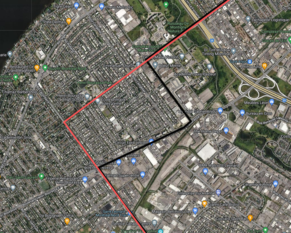 Pourquoi emprunter Henri-Bourassa dans le secteur Montréal-Nord, plutôt que suivre Lacordaire et Maurice-Duplessis? Le REM de l’Est emprunter Henri-Bourassa parce que cela offrait une meilleure acceptabilité sociale pour un viaduc, mais avec un tramway ce n’est plus un problème. Non seulement le tracé via Henri Bourassa est moins dense que celui au nord, mais ça force le tramway tourner 3 fois en plein milieux de grands carrefours. Ce genre de virage limite fortement la fréquence et vitesse d’un tramway, parce que ça bloque tous les mouvements dans l’intersection a chaque fois qu’un tramway a besoin de tourner.