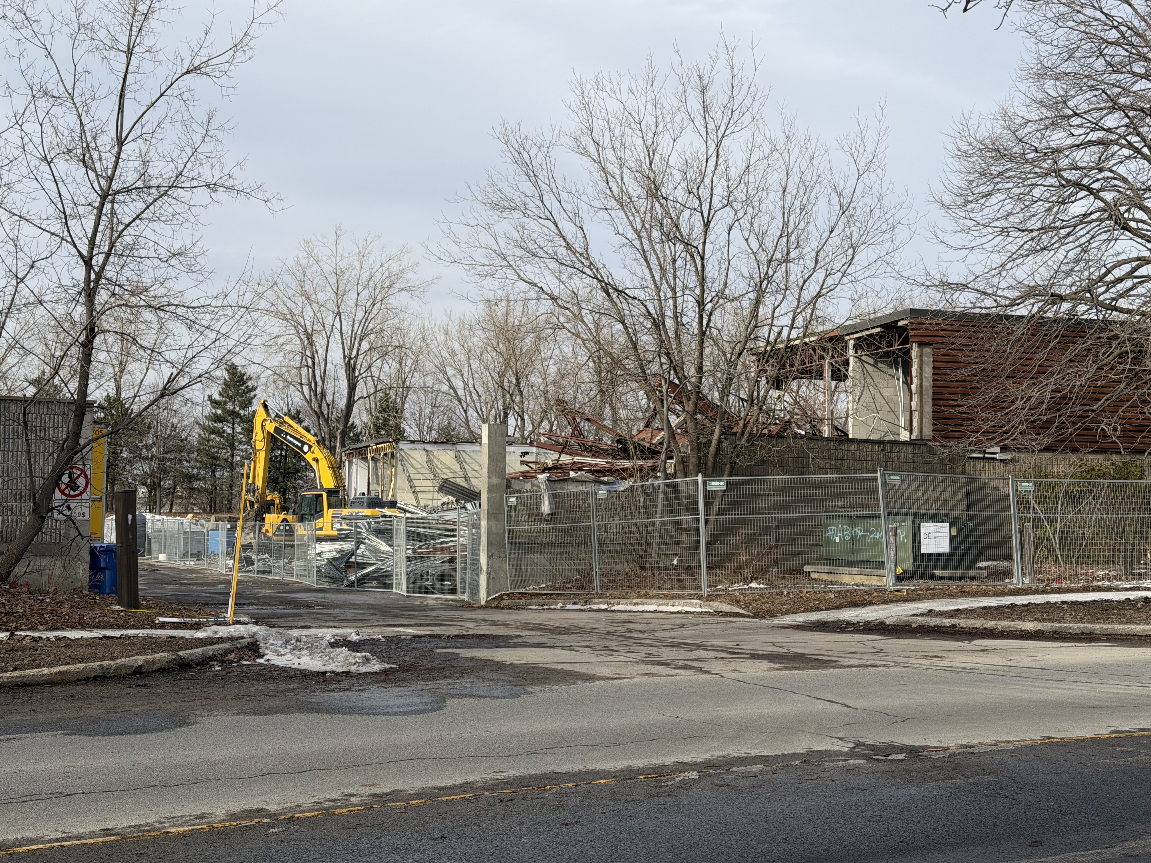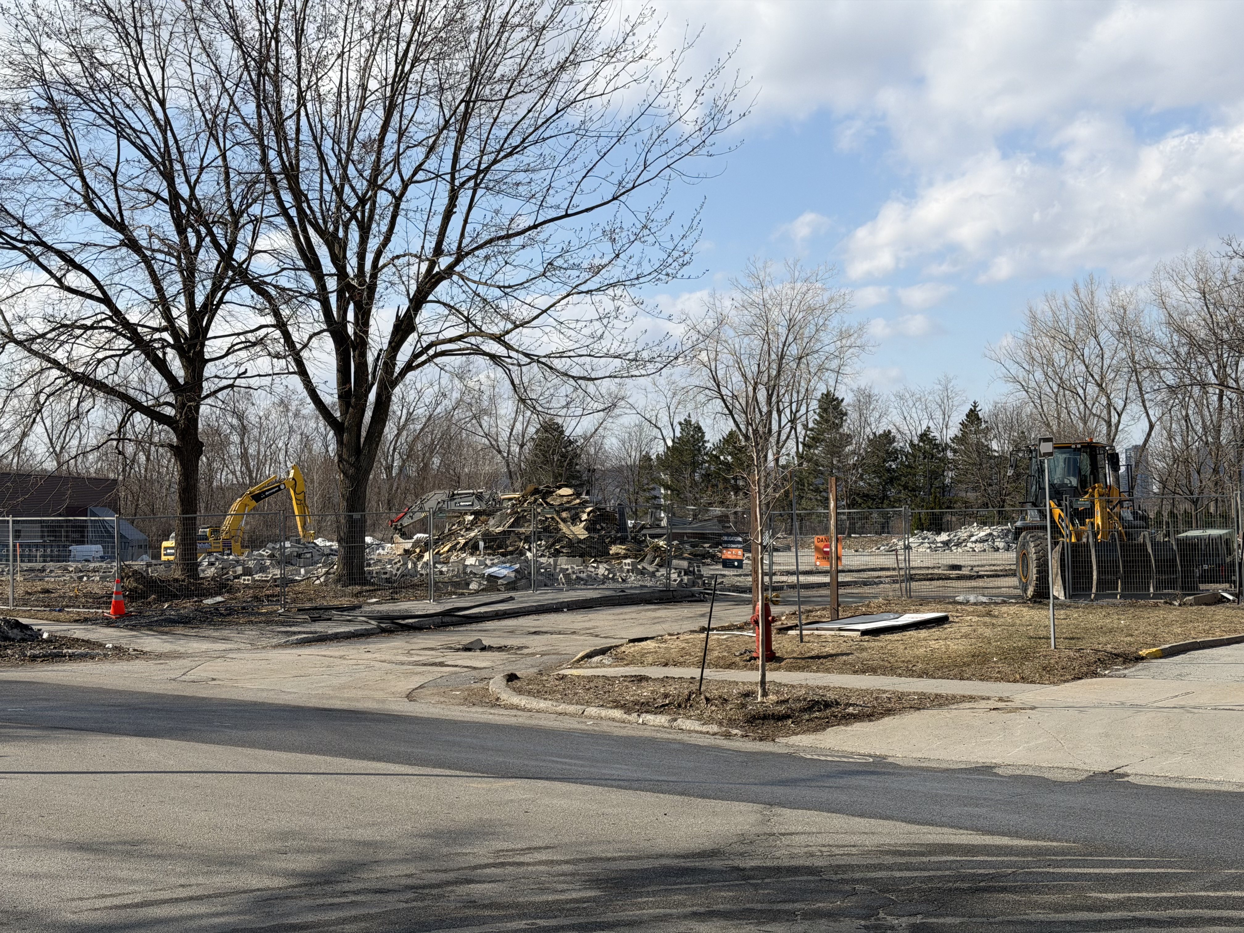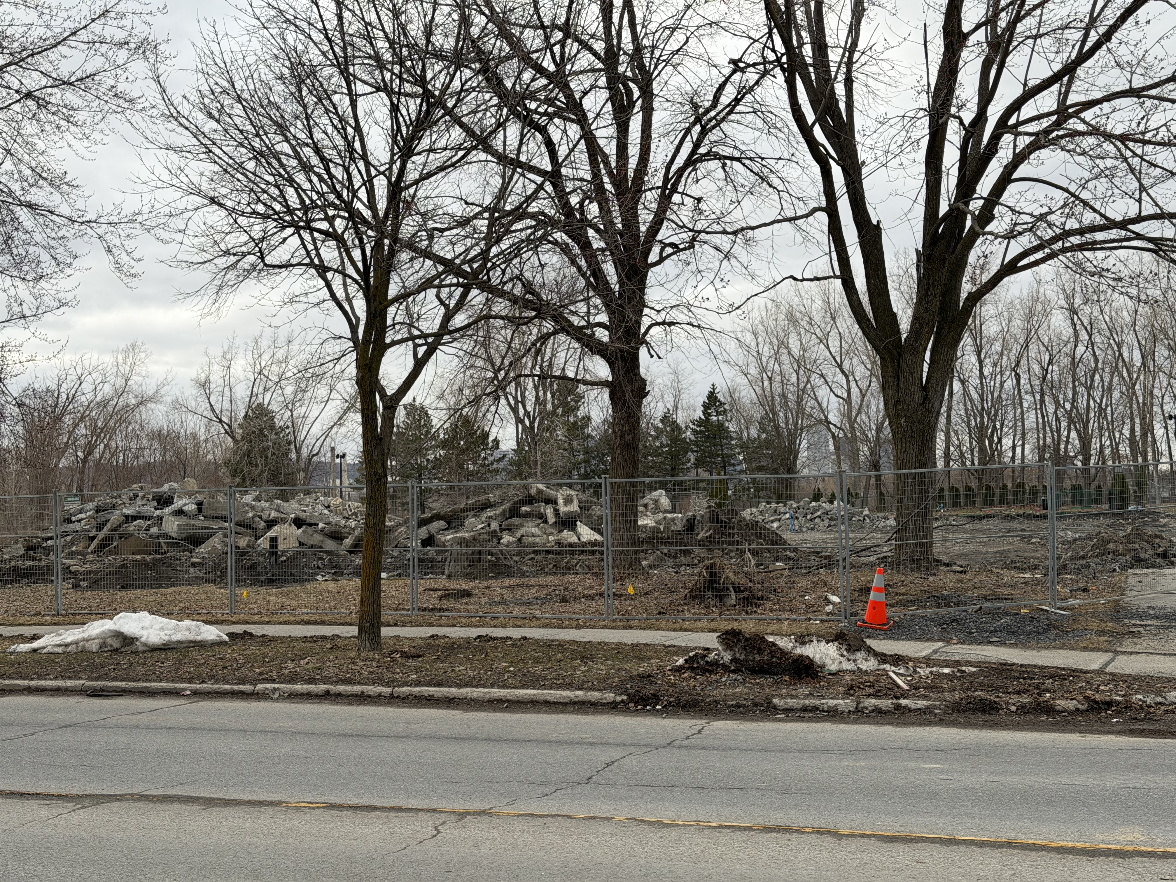 Démolition complétée! Il ne reste que la fondation, et j’imagine qu’on s’en occupera une fois que la construction du projet éventuel débutera. Il reste quelques résidus de démolition à retirer du site.
