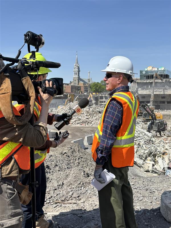 La destruction de l’ancienne maison de Radio-Canada à Montréal est l’un des plus gros chantiers de démolition de l’histoire de la métropole et génère des tonnes de déchets, notamment du béton et de l’acier. Le journaliste René Saint-Louis s’est demandé pourquoi il fallait démolir les différents étages qui étaient sous la terre et ce que l’on ferait avec ces déchets.