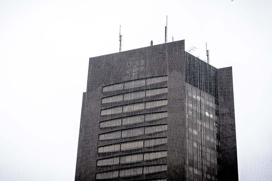 La tour brune de Radio-Canada, après le retrait de ses embématiques logos
