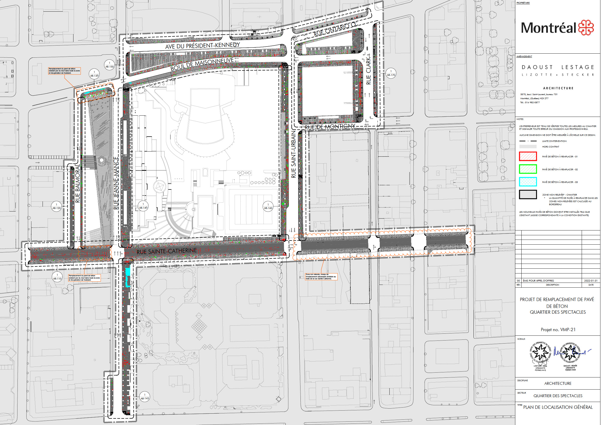 Appel d’offre pour le remplacement de pavés de béton dans le QDS: