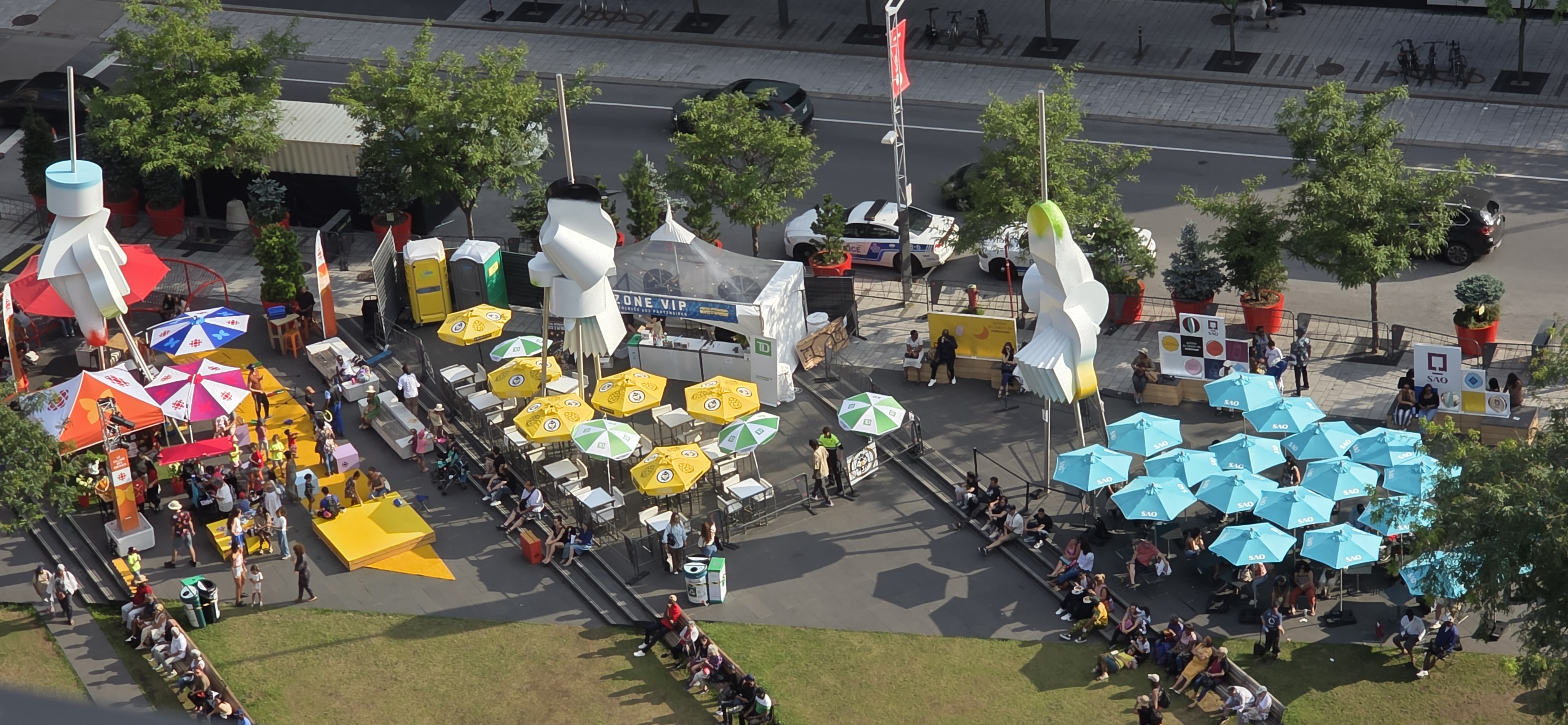C’est une soirée exceptionnelle pour le Festival de Jazz. La météo est parfaite et je n’ai jamais vu autant de festivaliers partout sur le site autour de la Place des Arts.