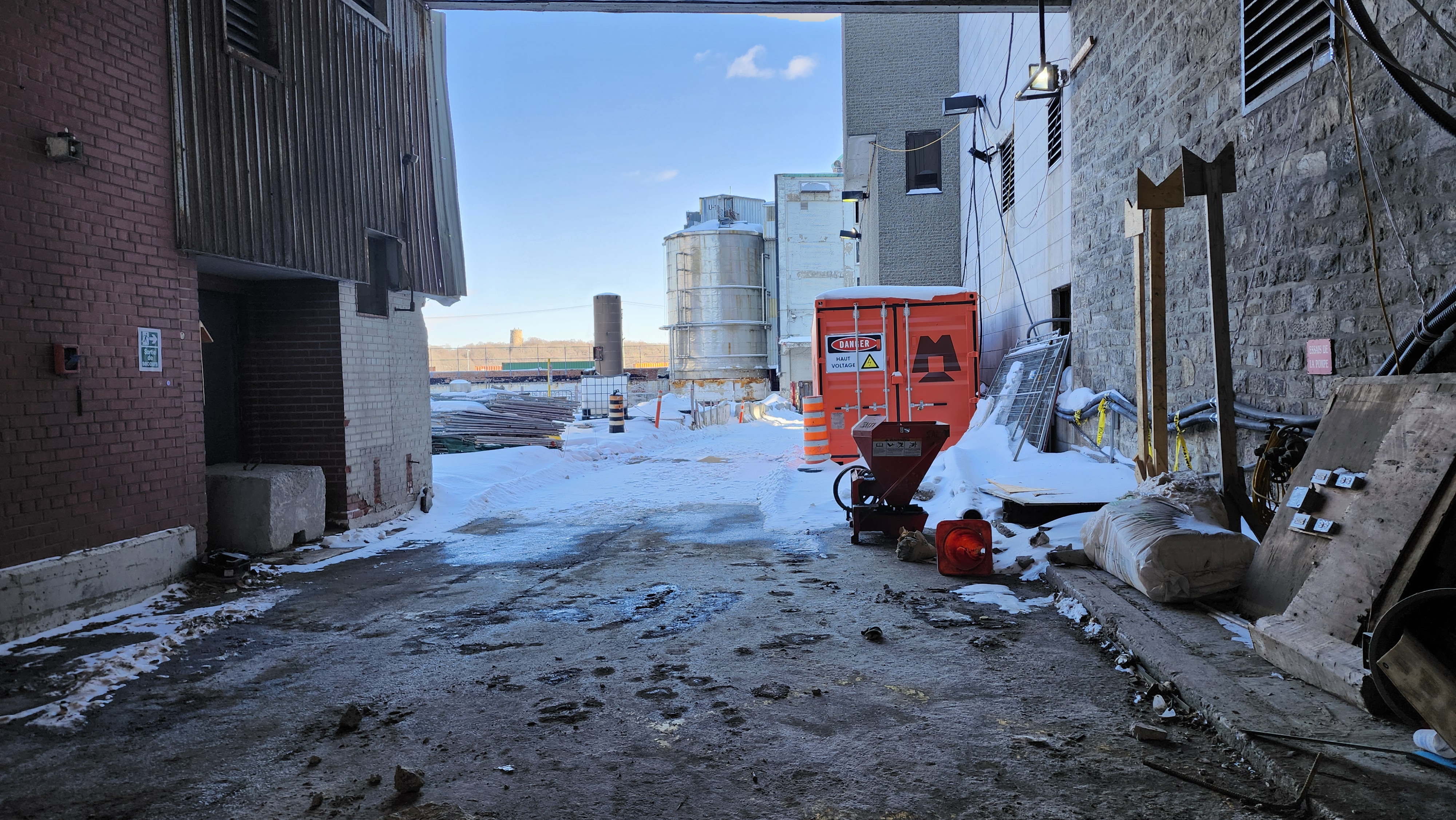 Malgré le froid et la neige, les travaux progressent, et peu à peu, des portions de l’ancienne usine s’effacent pour laisser place aux futurs bâtiments qui redéfiniront le paysage du secteur.