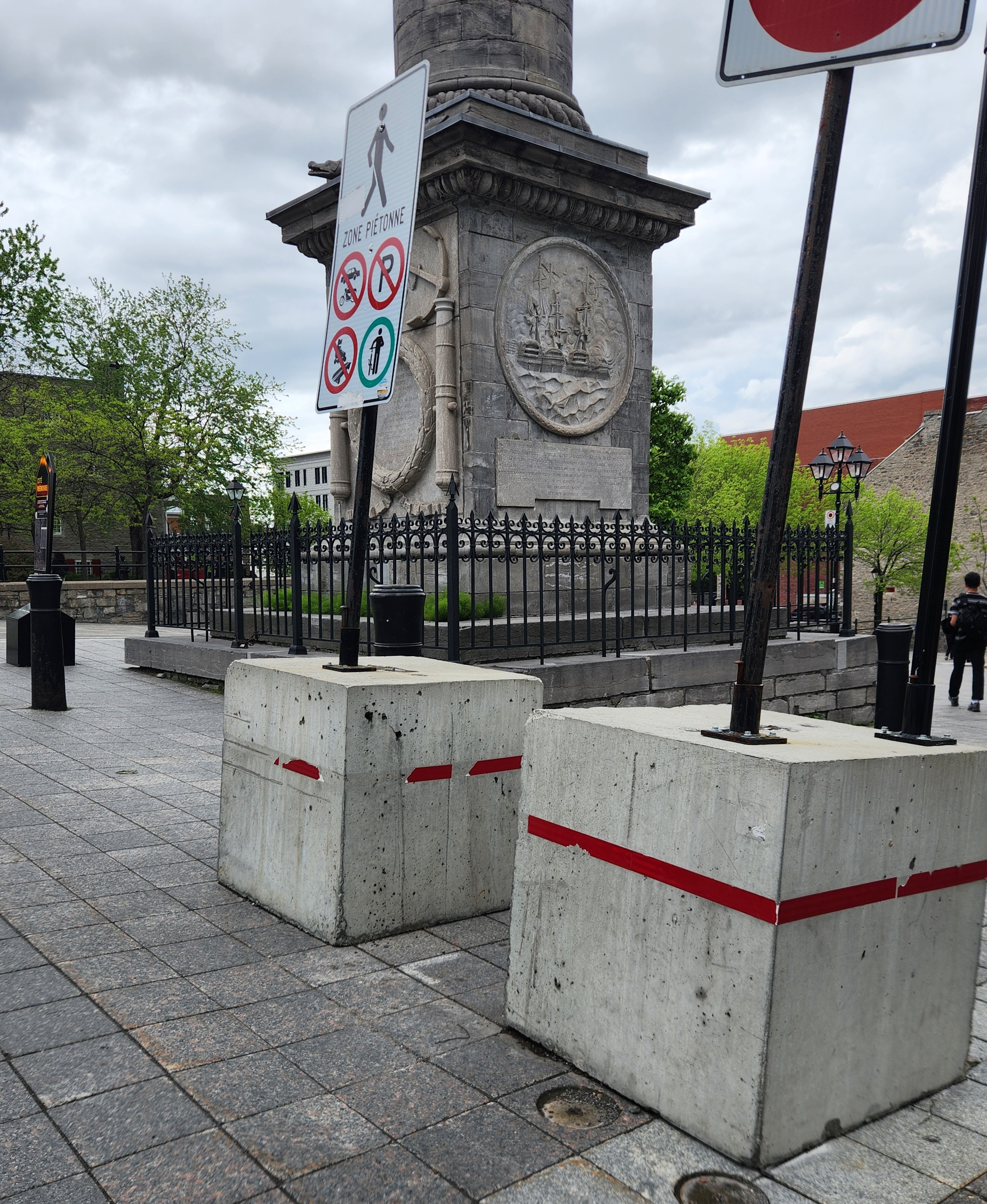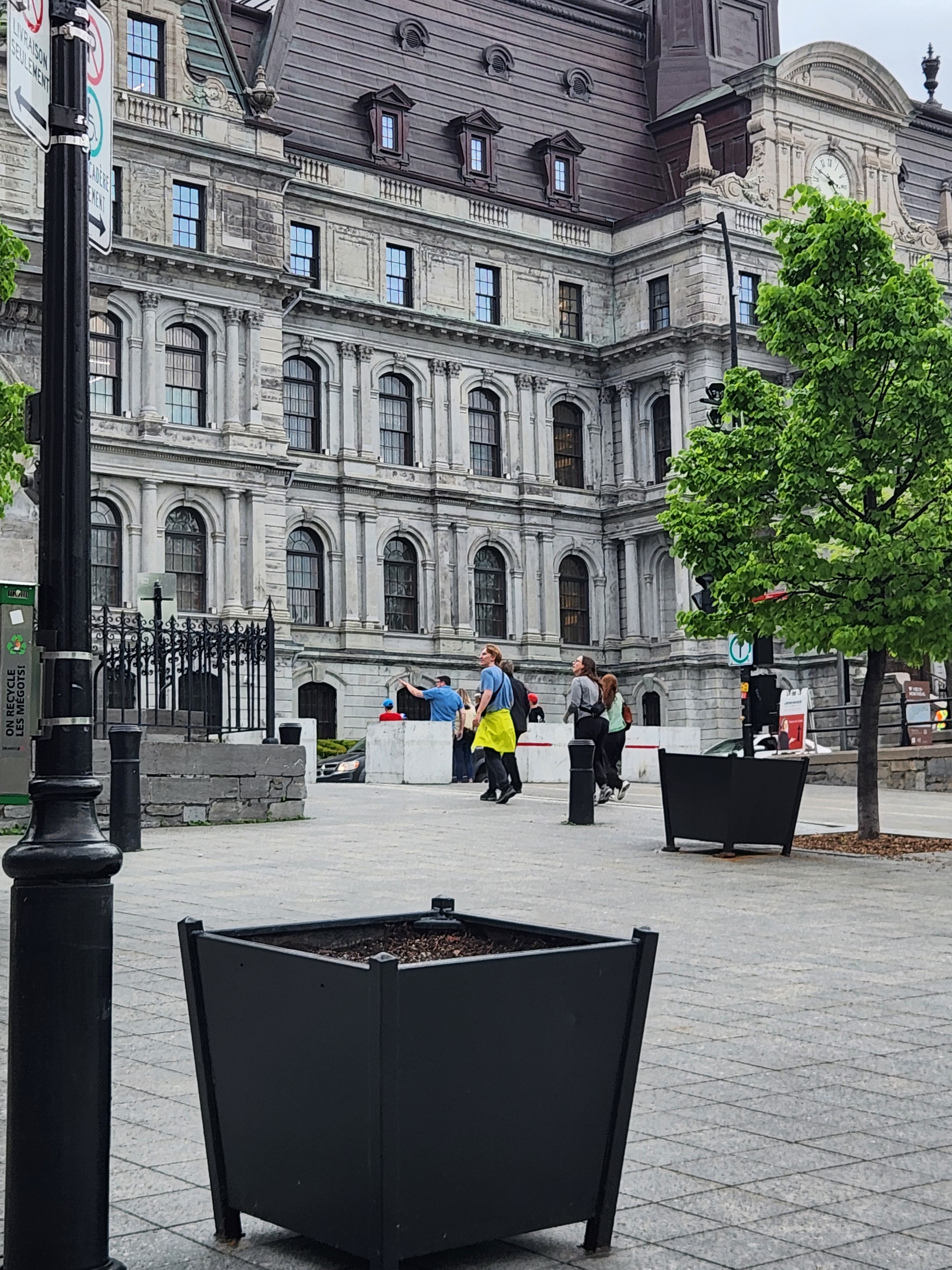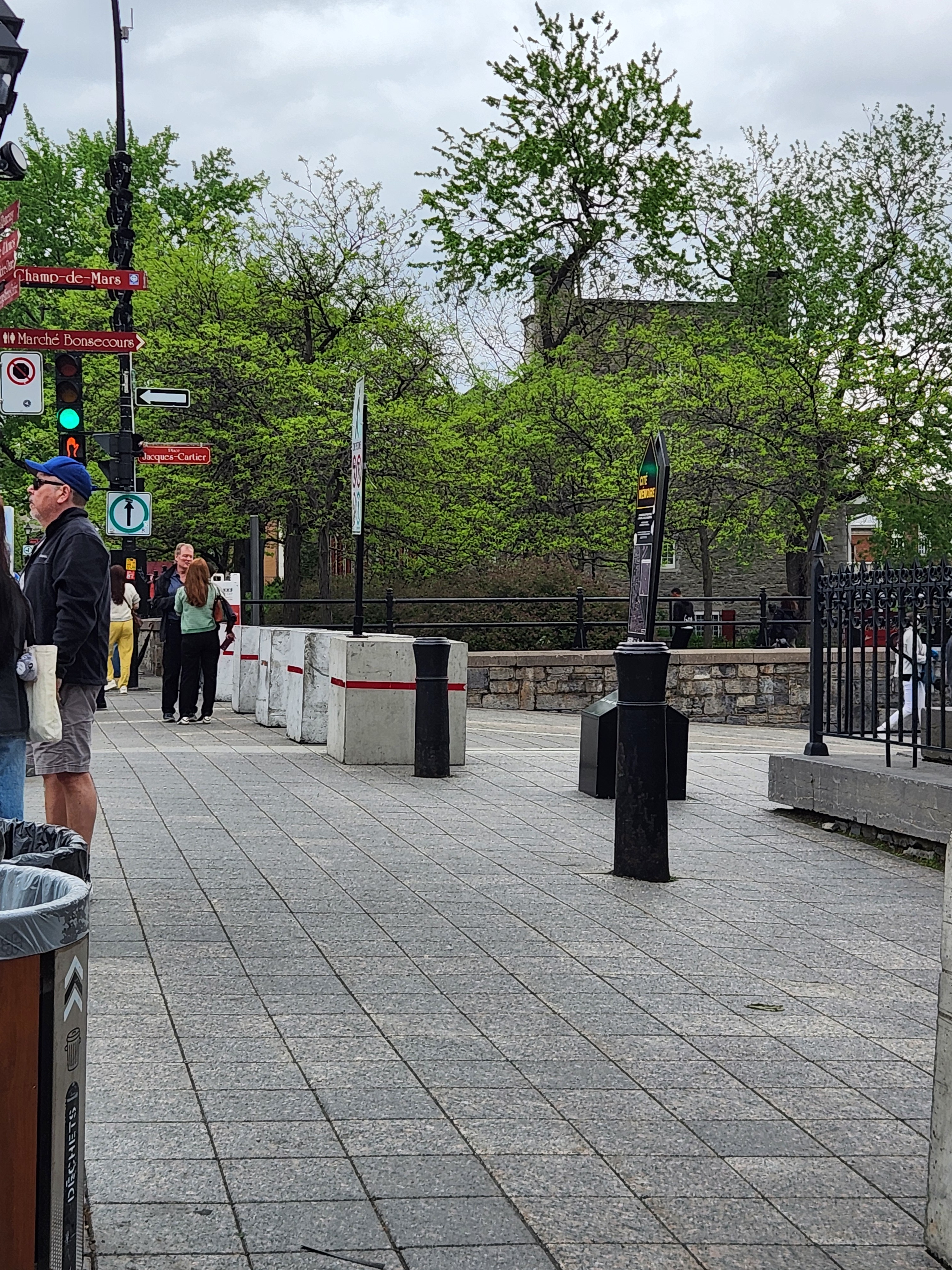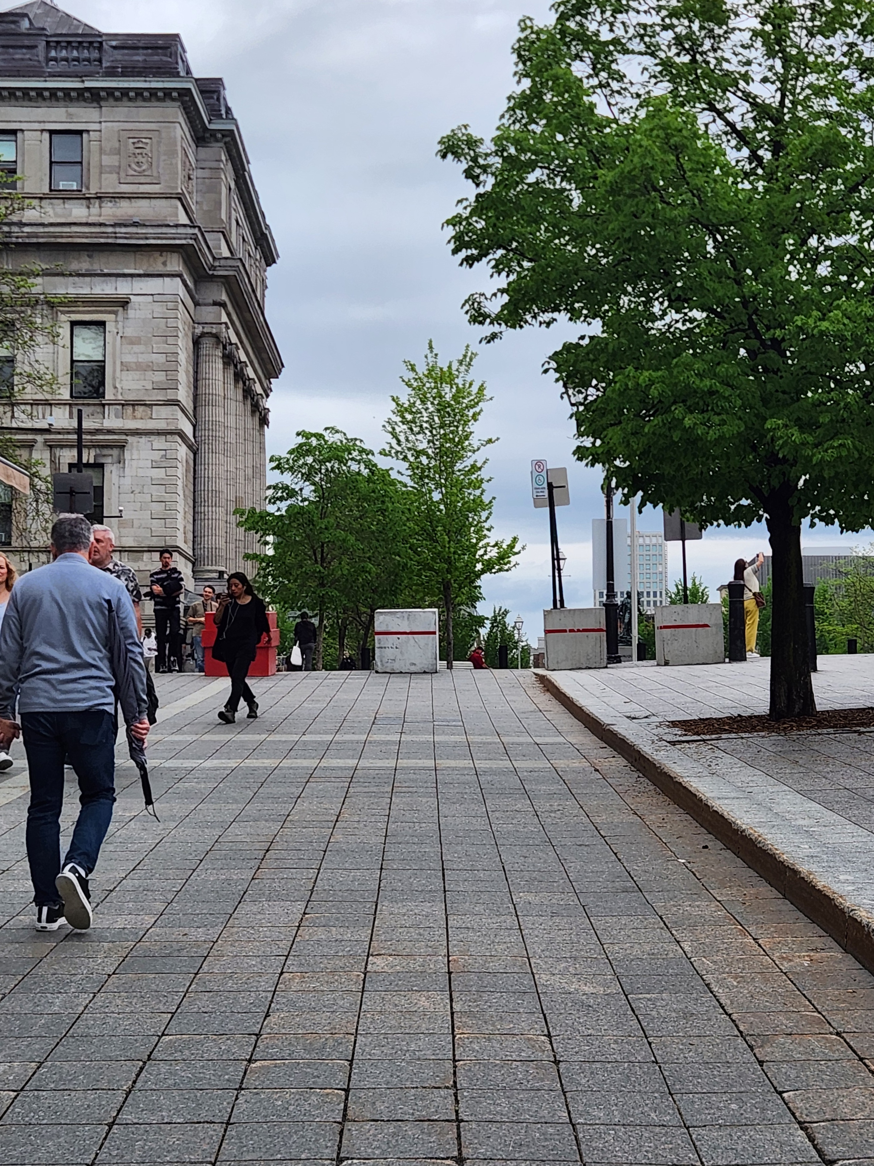 Faut quand même pas excuser la ville ici, il y a des bacs fleurs vide sur la place ou bien des dizaines d’arbres en pot sur Robert-Bourrassa, aucune excuse pour mettre ces horreurs de bloc de béton dans le coeur du quartier touristique