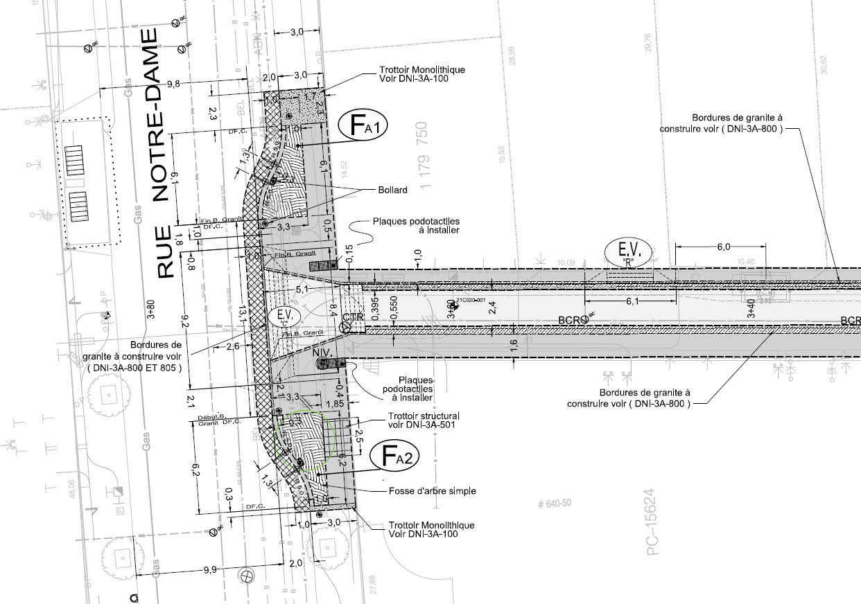 Les coins droits des trottoirs sont dans les plans de l’appel d’offres