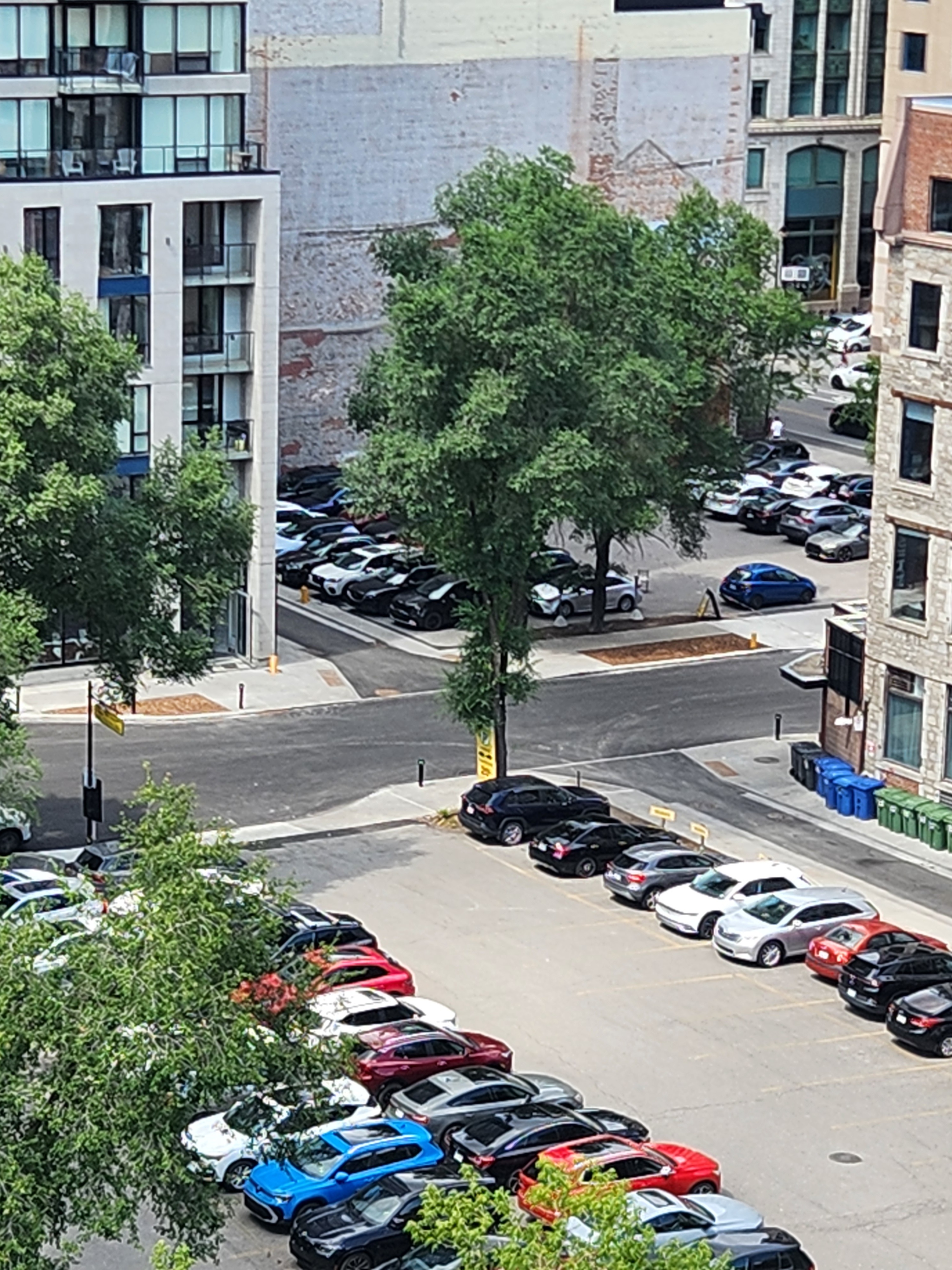 La nouvelle rue De Longueuil avec le nouveau marquage jaune du stationnement adjacent. Ça fait propre.