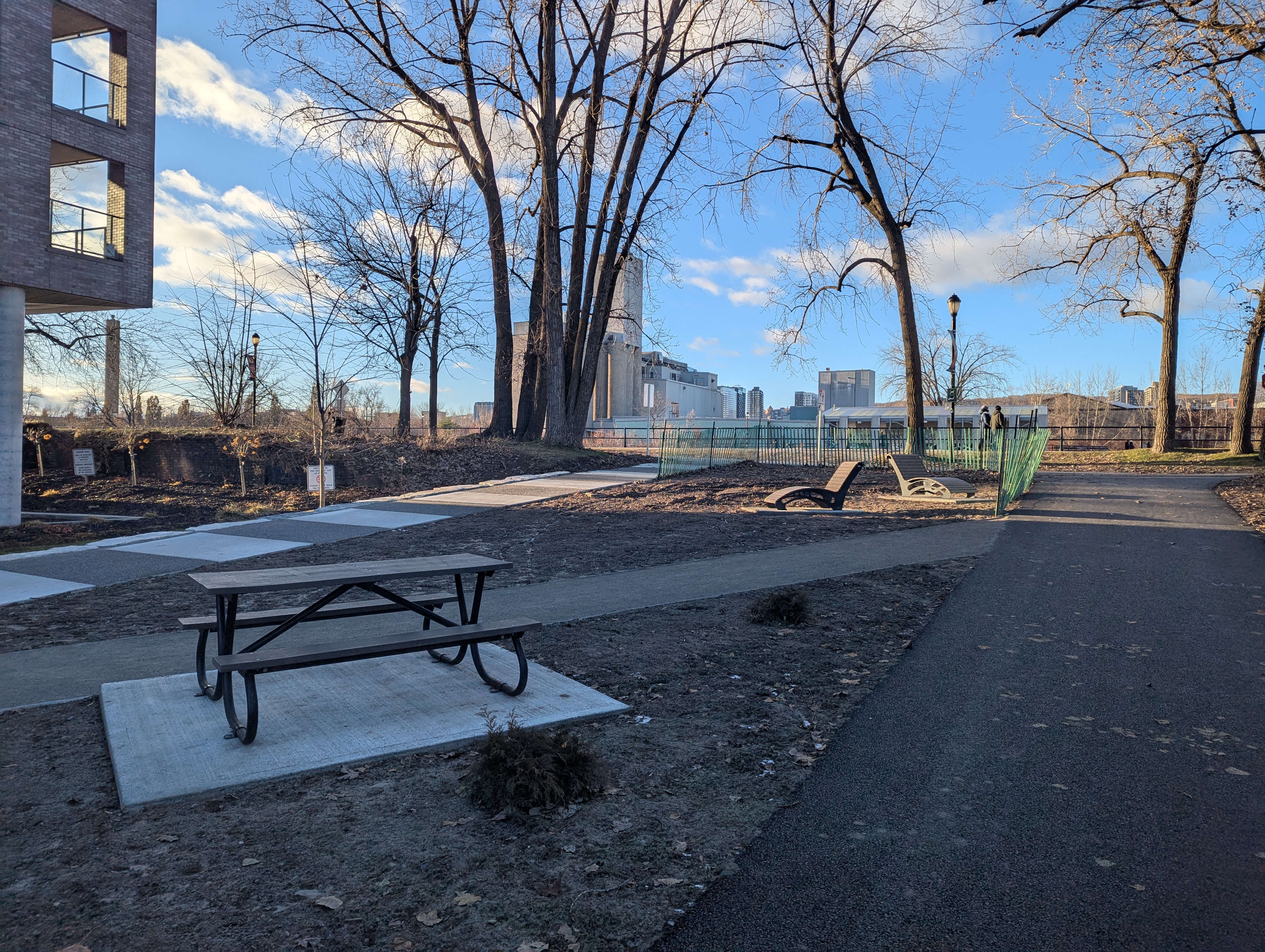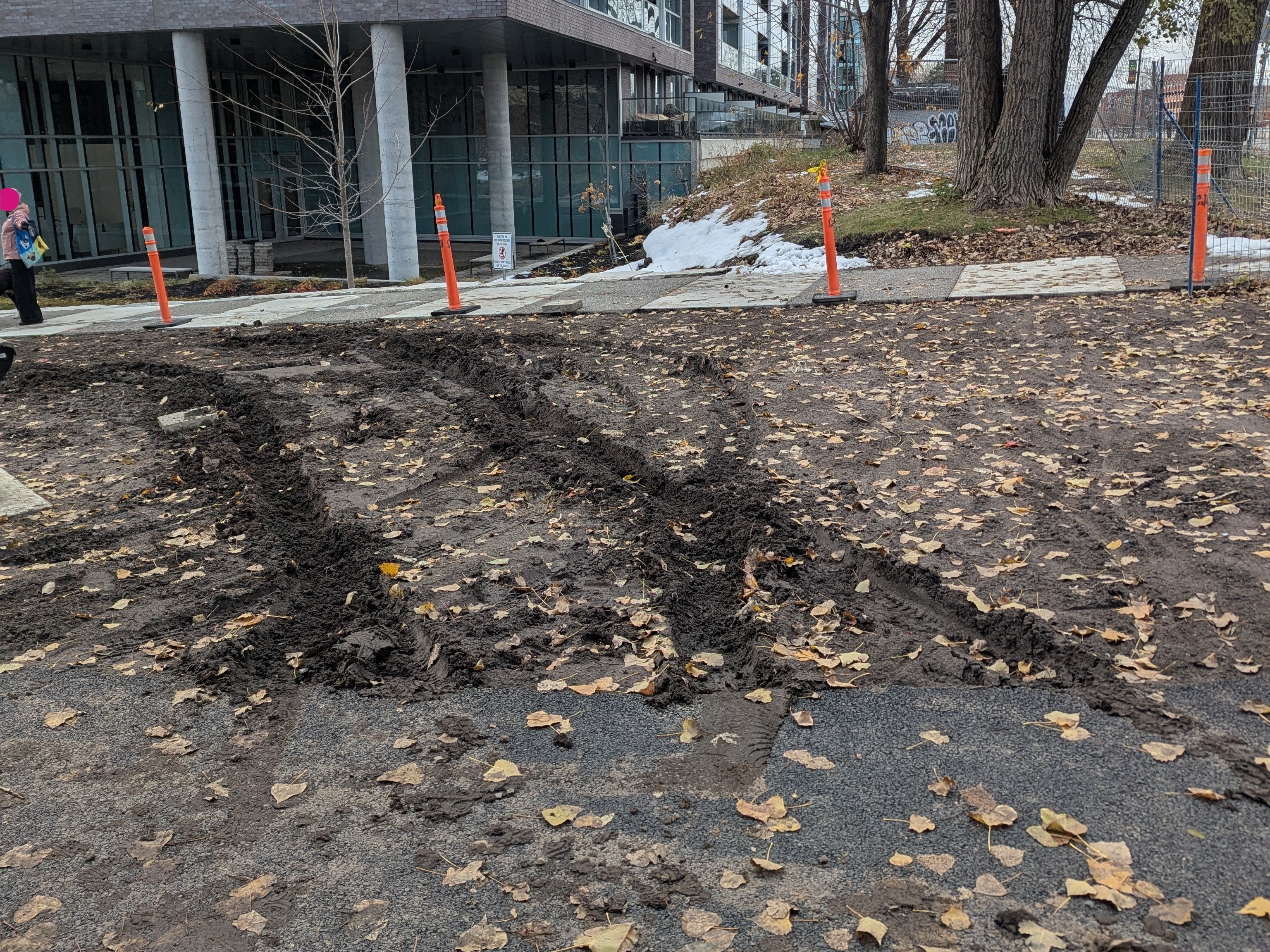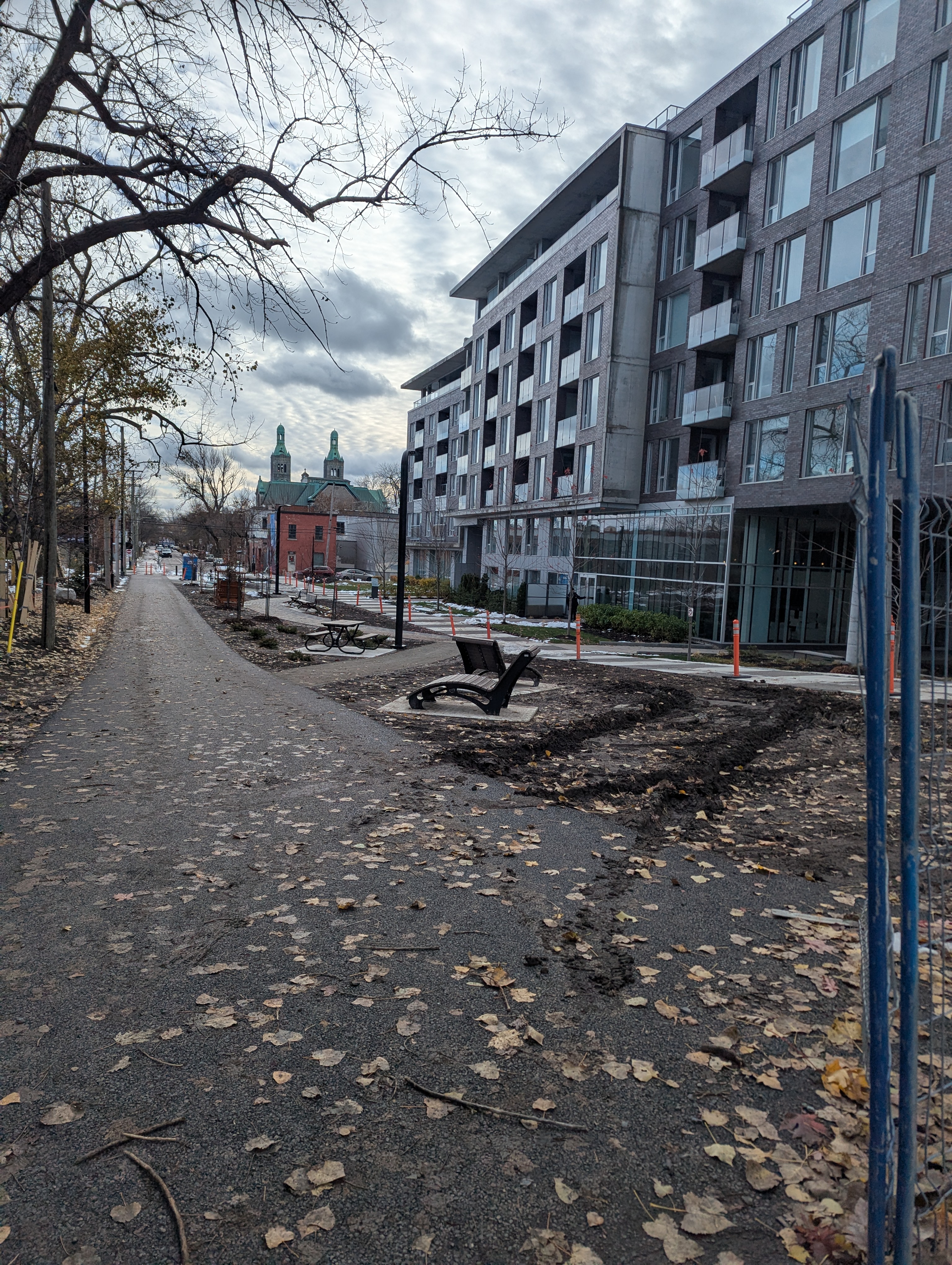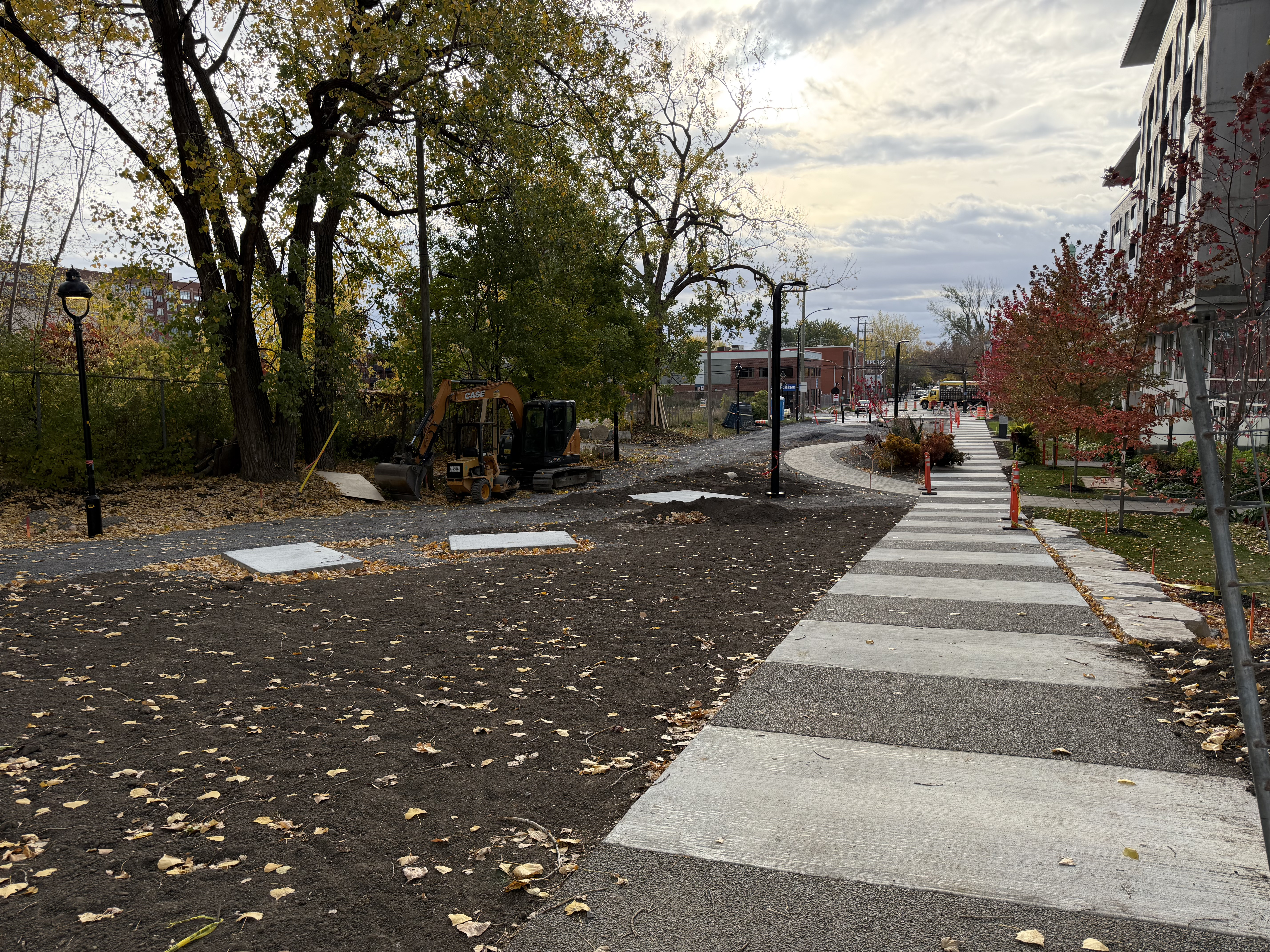 La piste cyclable est de l’autre côté, de même que la station Bixi électrifiée et les supports à vélo