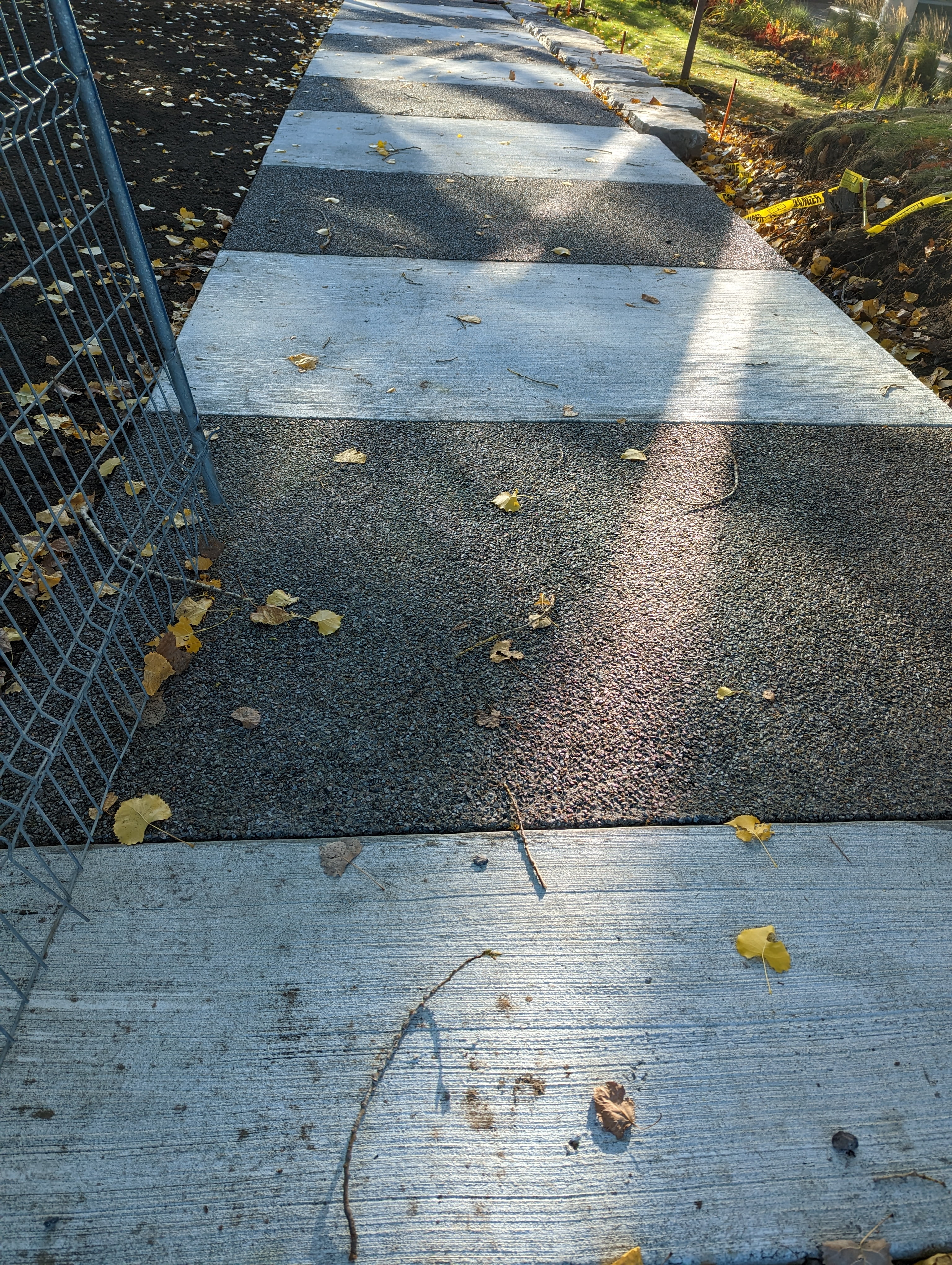 Ce matin il me semblait que c’était « exposed aggregate » mais je ne suis pas 100% sûr, et mon pneu a pété juste après donc cet après-midi je ne serai pas là avant le soleil couche. (Pray for me, je dois mettre les nouveaux pneus Gatorskins et ce sont fameux pour être difficile à installer!)