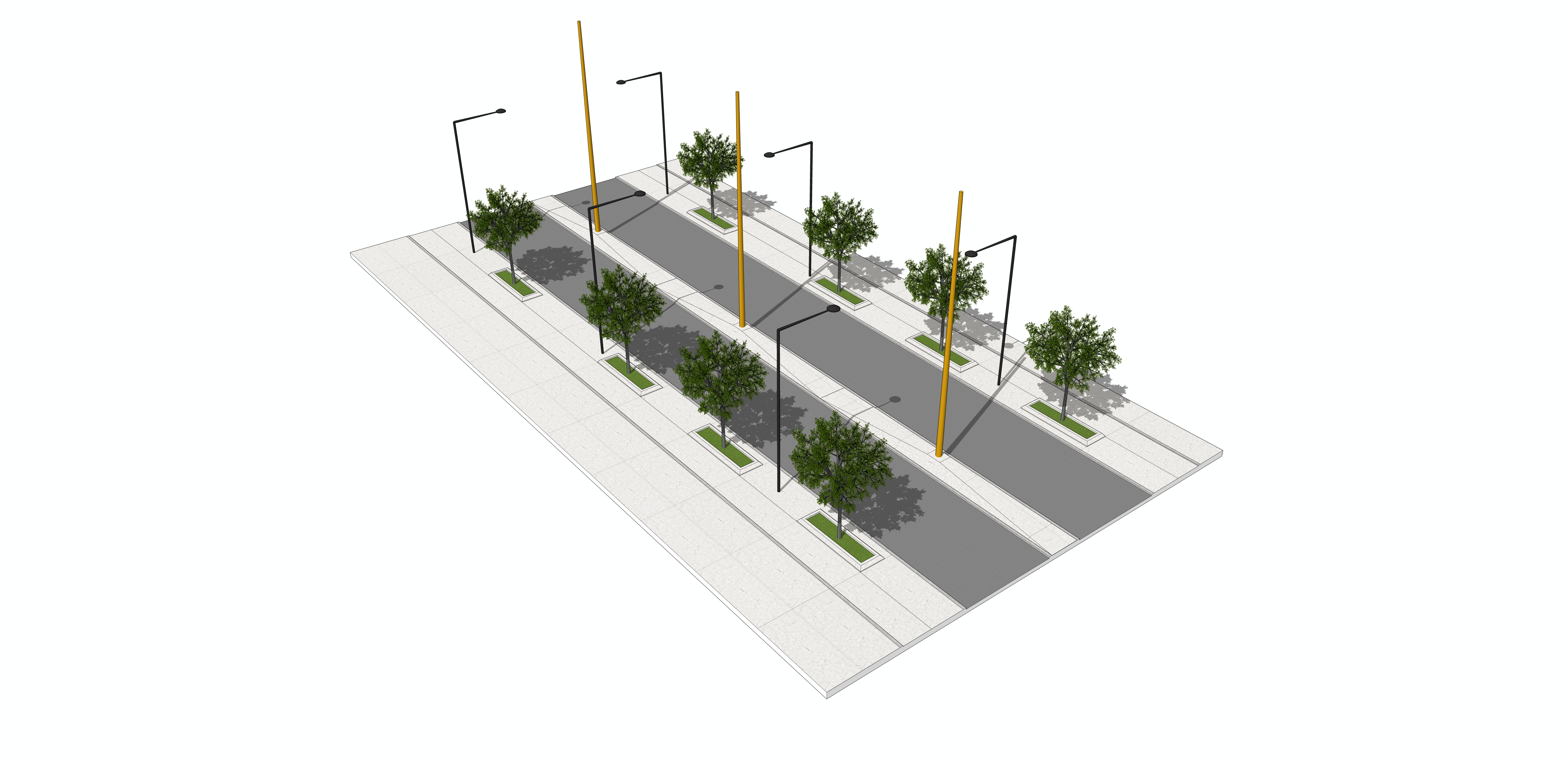 Est-ce qu’il y a une sur-hauteur par rapport aux lampadaires du bord de la rue ou c’est une illusion ?