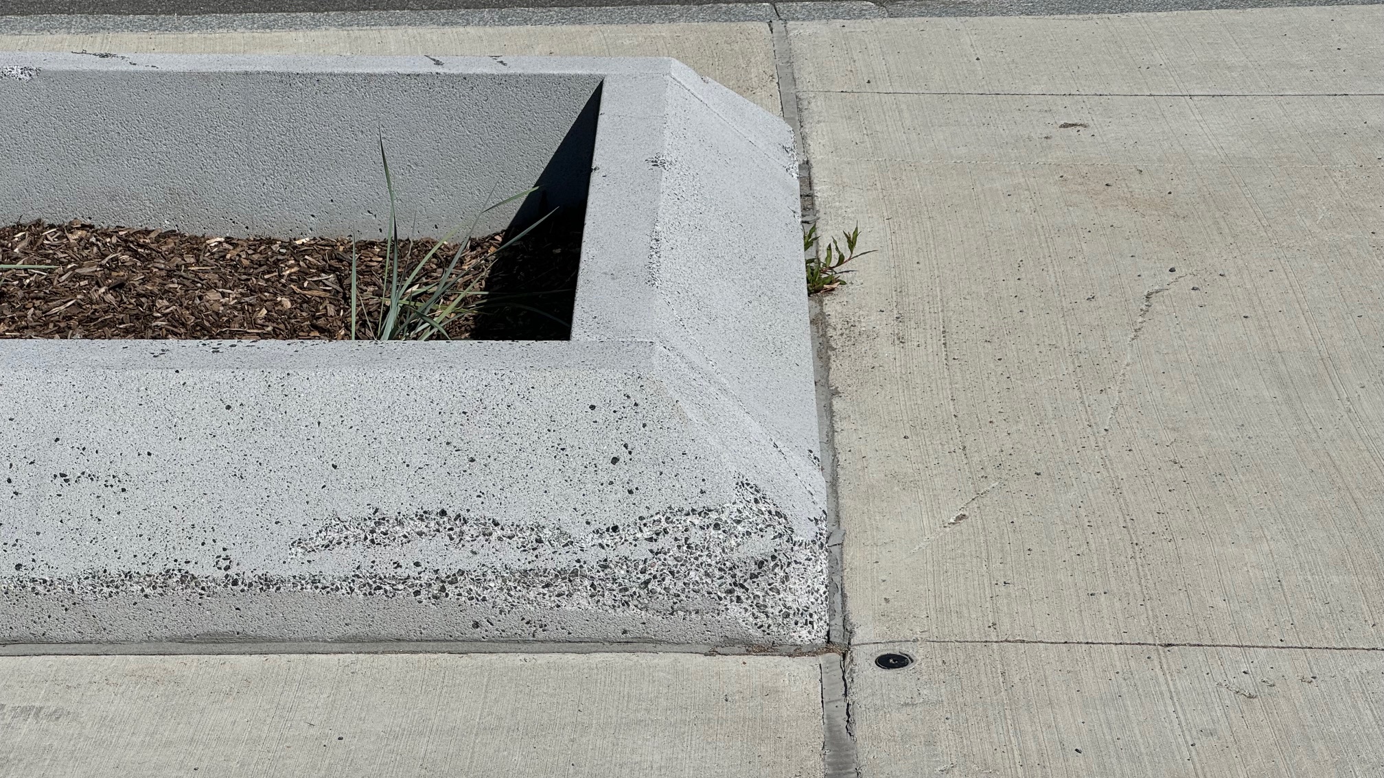 Les bordures de béton autour des fosses d’arbres sont très vulnérables et sont déjà en mauvais état.