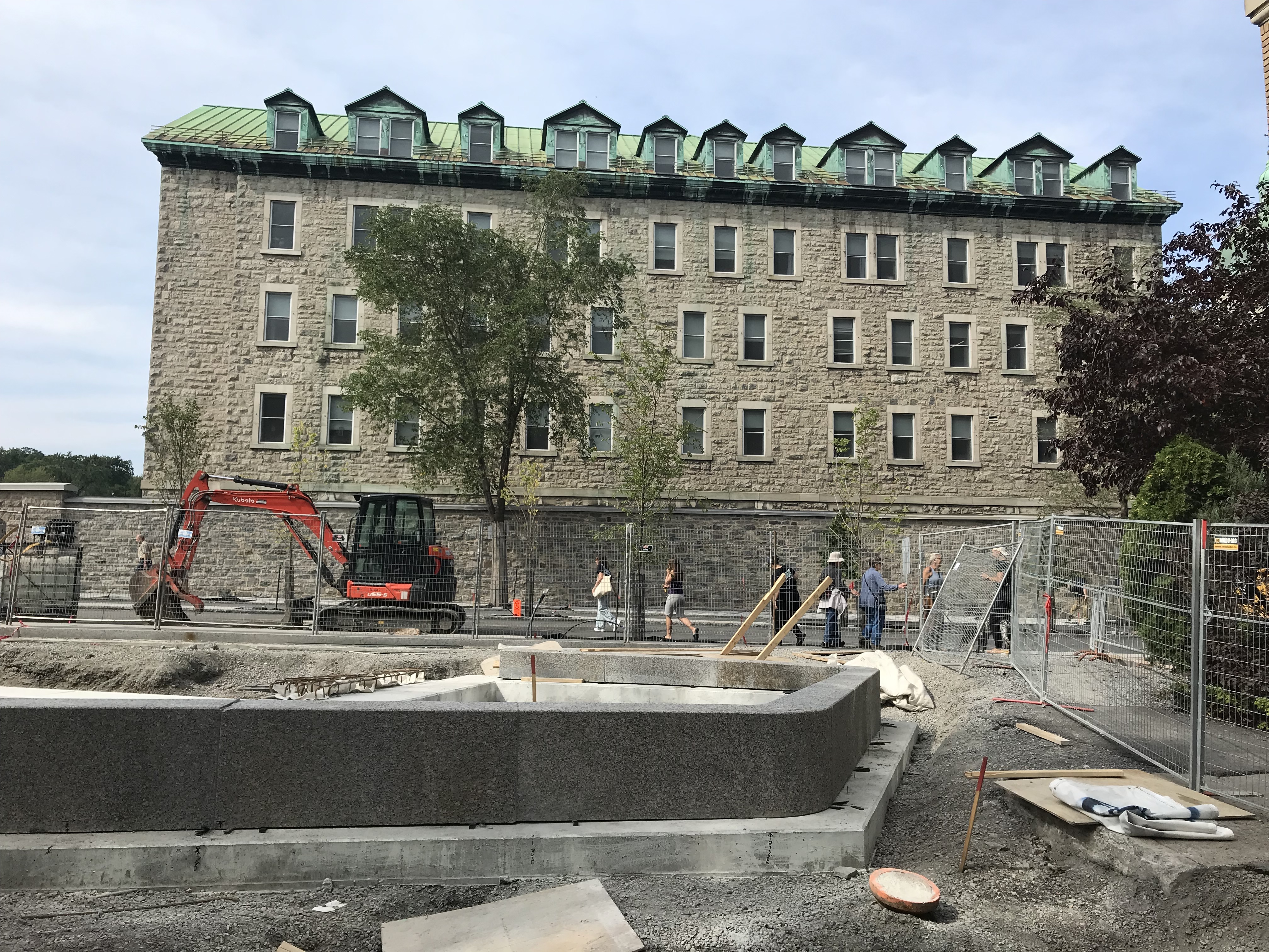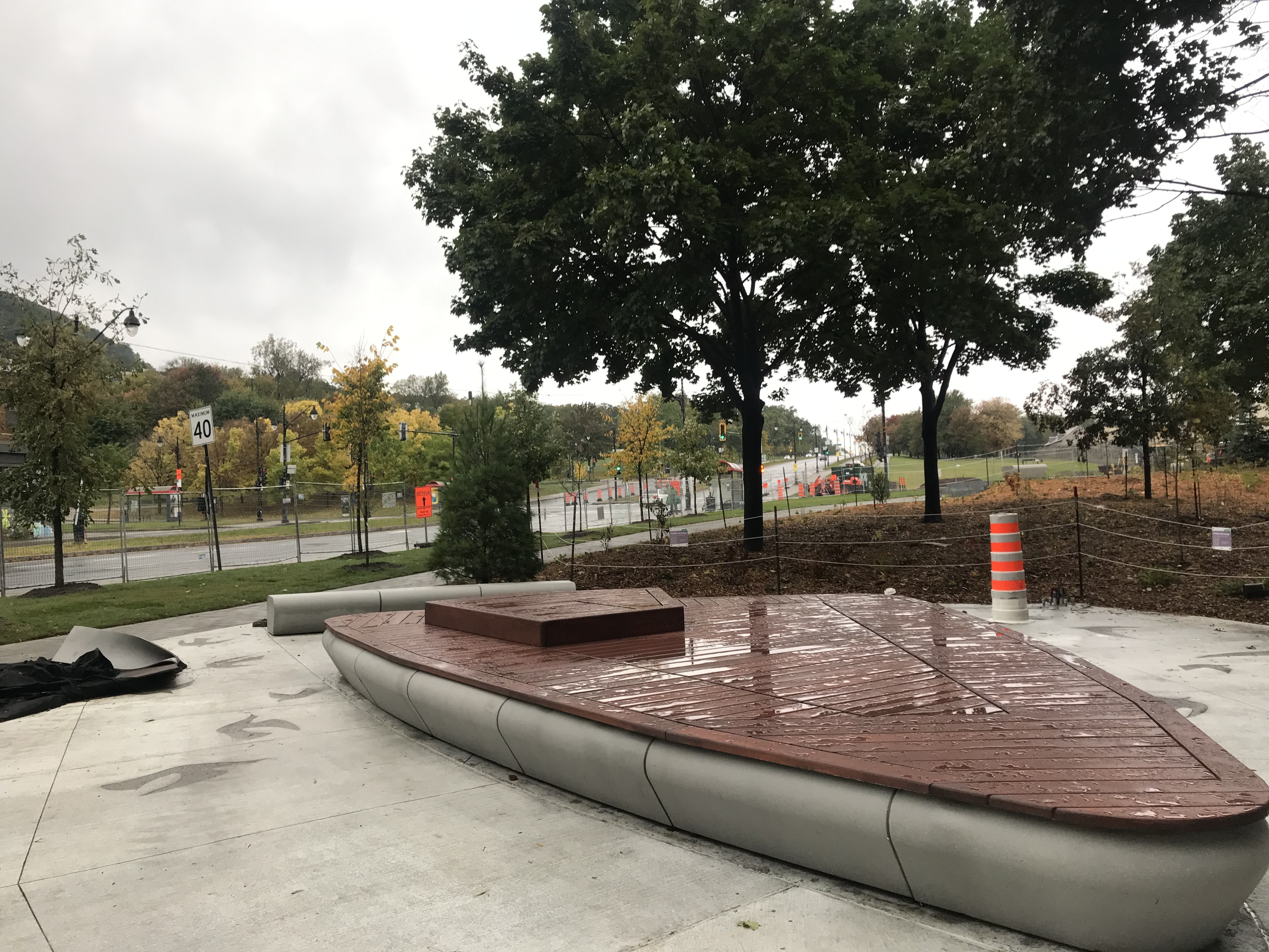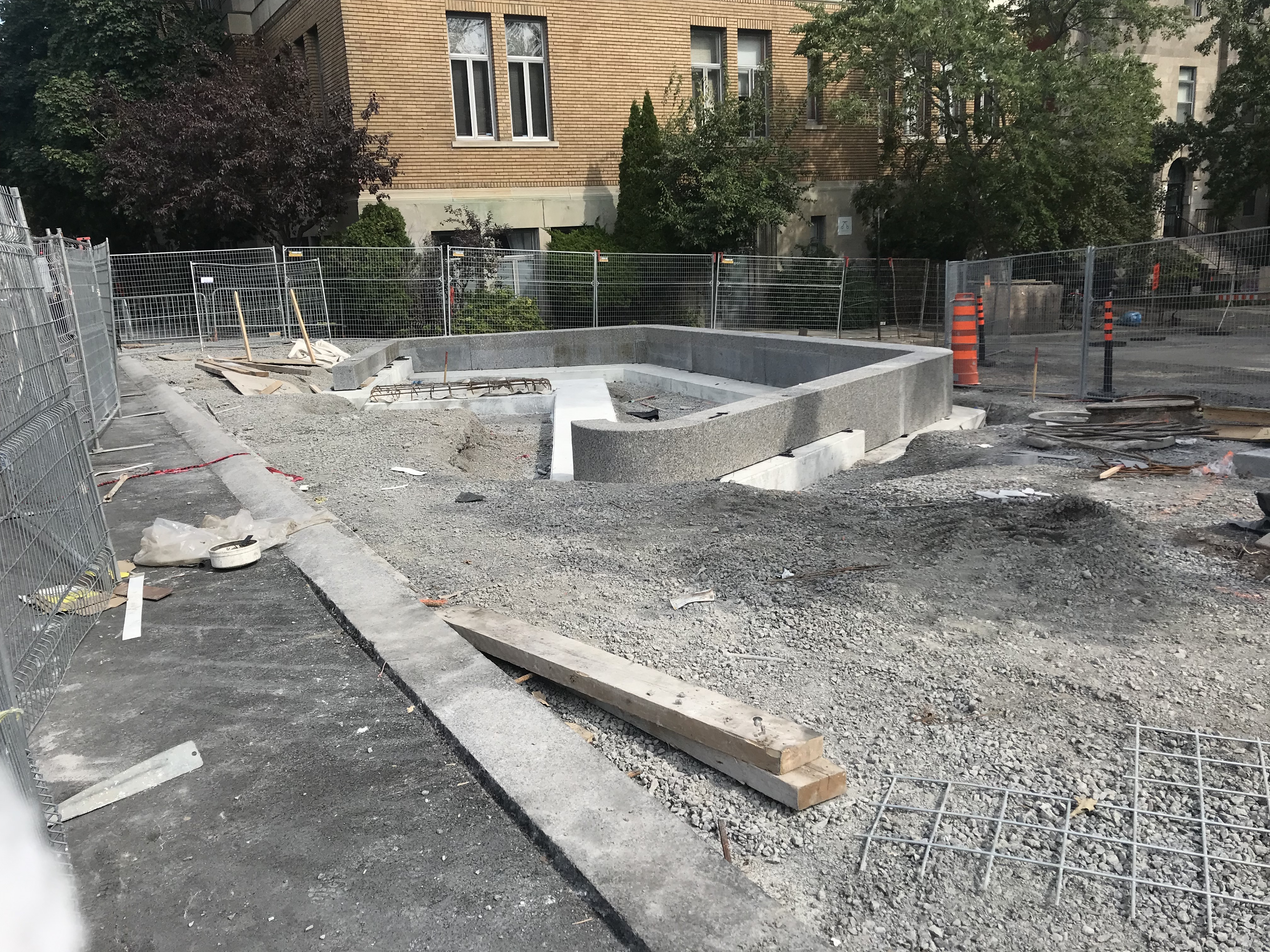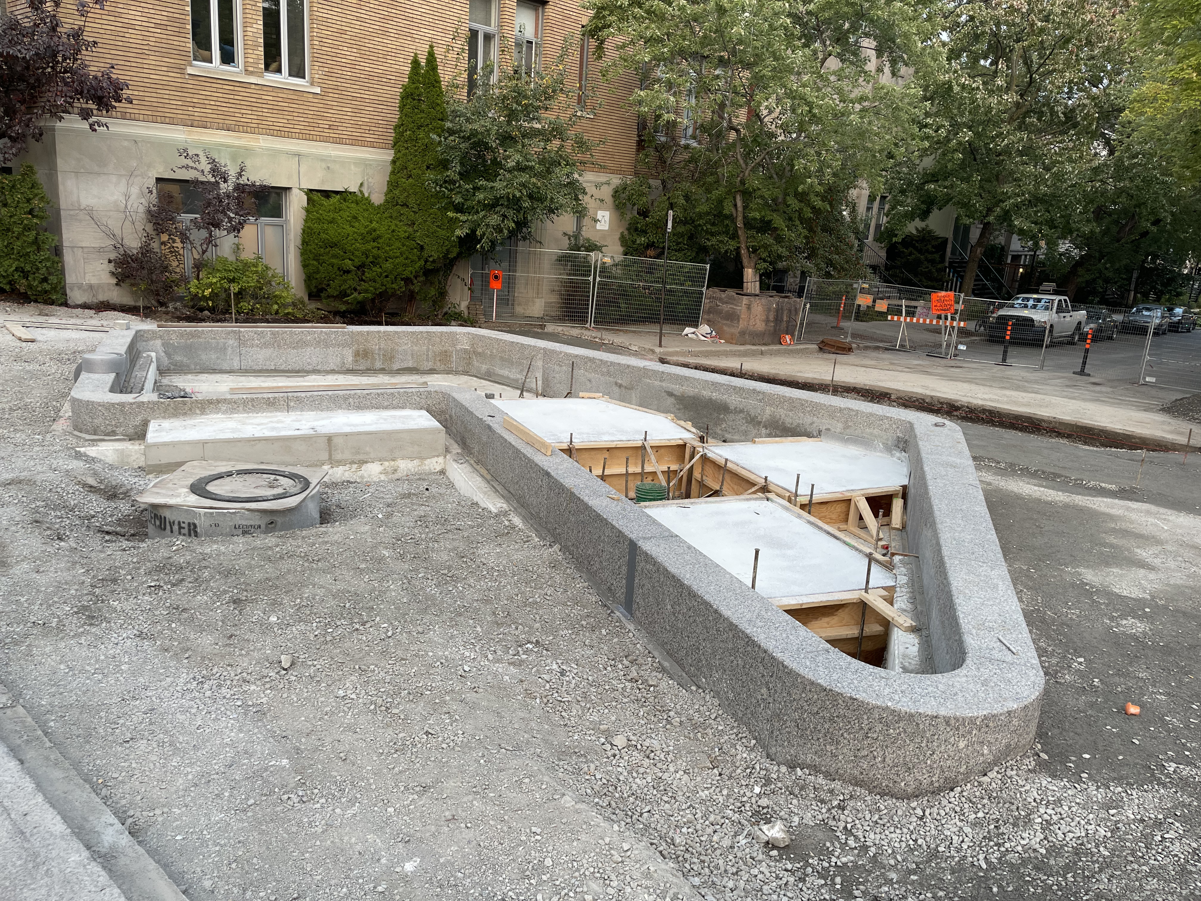 Oui quand j’y suis allé la semaine passée j’ai remarqué qu’il y avait une section qui attendait le béton mais il m’avais semblé que c’était pourtant une des toutes premières sections de trottoir qui avaient été faites, donc ceci explique la raison.