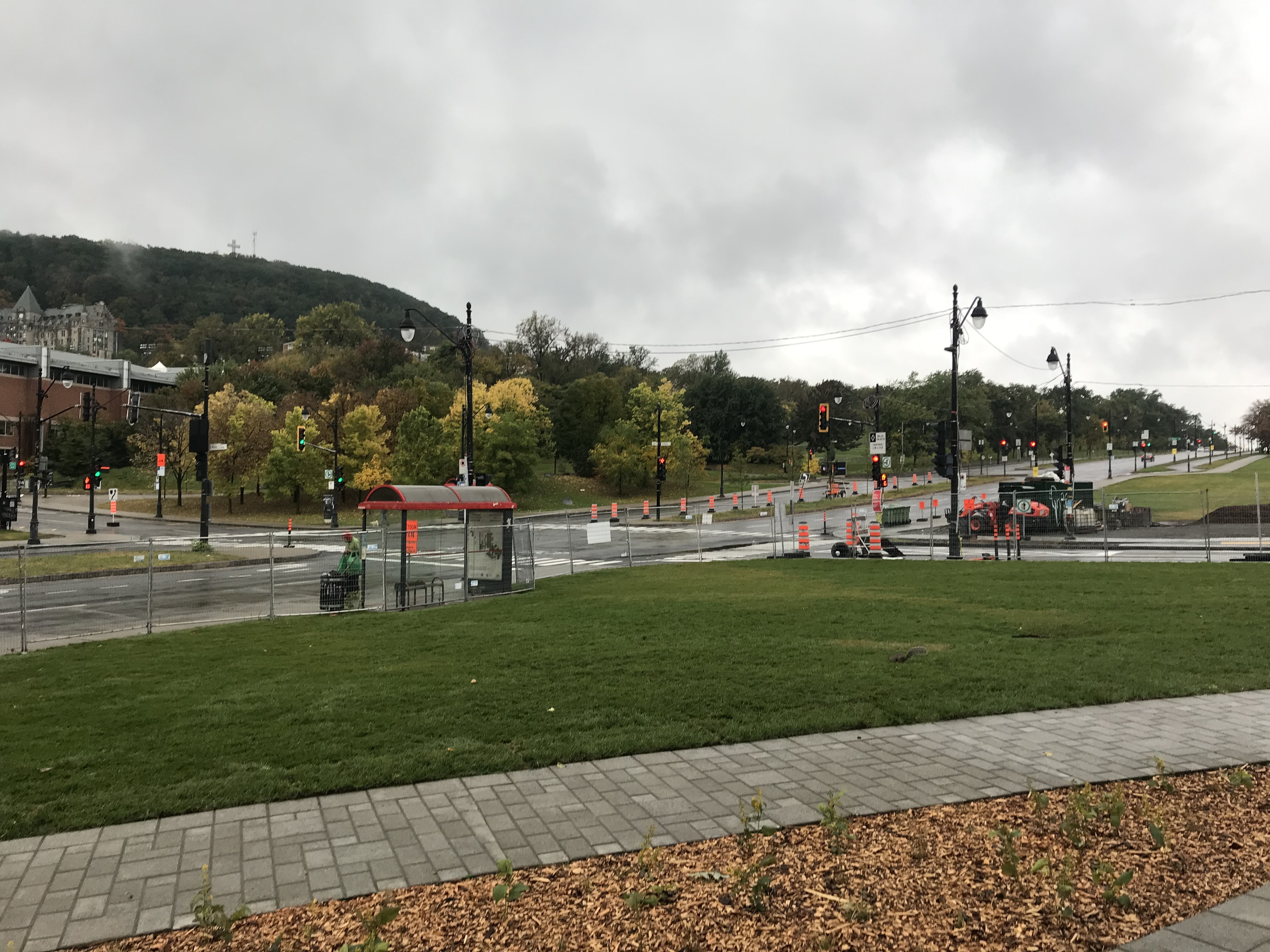 C’est le même problème partout: il manque des poteaux de feu de circulation à 6 boulons (c’est le même problème qui a retardé l’ouverture de la piste Christophe-Coloomb,ils ont depuis installé temporairement des poteaux à 4 boulons stabilisés avec des gros blocs de béton)