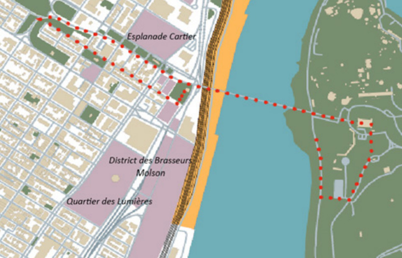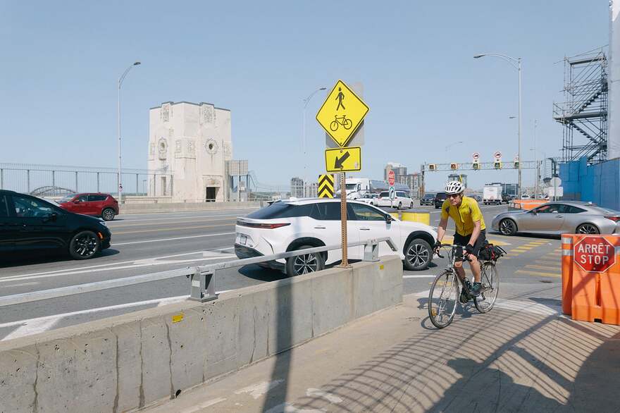 Le pont Jacques-Cartier se trouve en plein milieu urbain, sans avoir été conçu à la base pour cette réalité. L’accès pour les riverains à mobilité active (et surtout les personnes à mobilité réduite) reste problématique pour rendre au parc Jean-Drapeau.